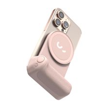ShiftCam SnapGrip magnetischer Grip & Powerbank - Sicherer magnetischer (MagSafe) Griff für Smartphones mit Bluetooth-Auslöser & eingebauter kabelloser Powerbank mit 3200mAh, auch nutzbar als portabler Dock für alle iPhones ab iPhone 12 (MagSafe) & weiteren Smartphones mit Magentic Sticker (im Lieferumfang enthalten) - Chalk Pink