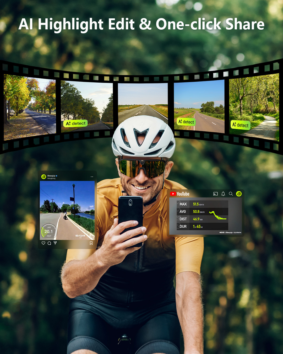 Nehmen Sie Ihre sportlichen Highlights mühelos auf, bearbeiten Sie sie und teilen Sie sie. Mit der integrierten KI-Bearbeitung stellt die Ranger automatisch Ihre besten Momente zu teilbaren Clips zusammen - ohne manuelles Schneiden oder Nachbearbeitung. Einfach antippen, fahren und teilen.