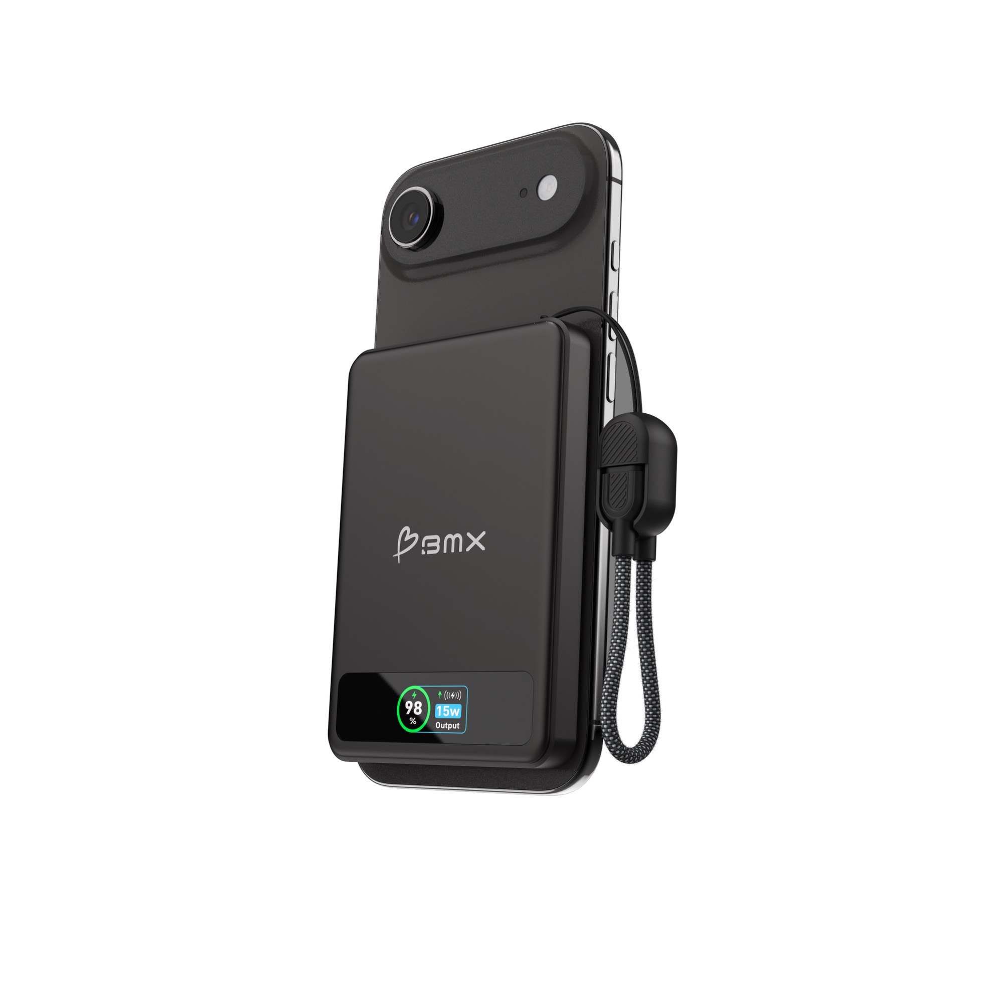 BMX SolidSafe Air - Ultradünne 5'000mAh Semi-Solid State MagSafe Power Bank mit 20 Watt Leistung und MagSafe sowie Qi2 Wireless Charging Funktion - Black