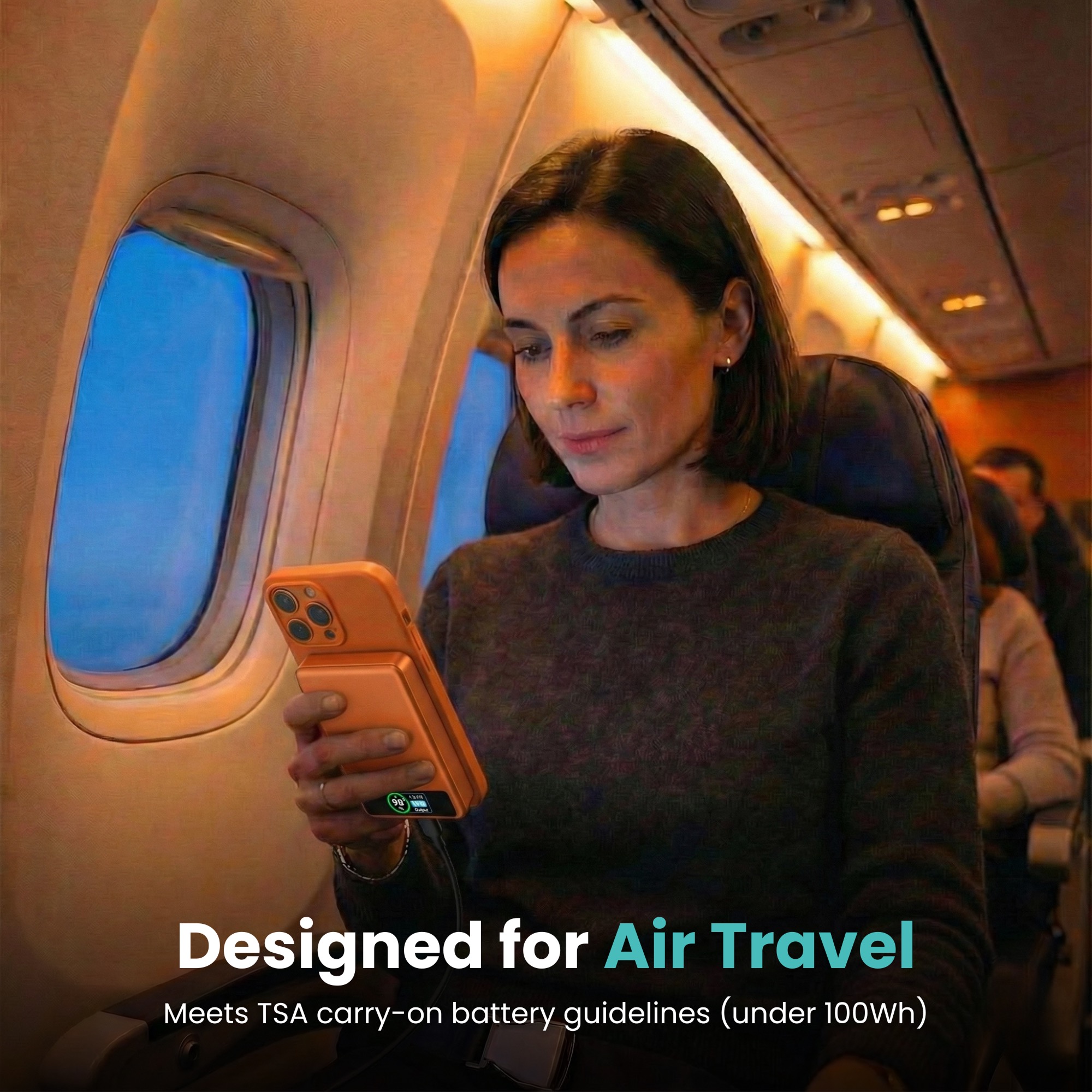 Die SolidSafe 5K ist eine Powerbank mit 10.000 mAh, die speziell zur Verringerung der Brandgefahr entwickelt wurde. Halb-Festkörper-Batteriezellen enthalten nur einen Bruchteil der brennbaren Flüssigkeit, die in herkömmlichen Lithium-Ionen-Batterien zu finden ist, und sind so konzipiert, dass sie thermischen Ausfällen widerstehen, die zur Entzündung von Batterien führen. Das ist der Grund, warum Powerbanks zurückgerufen werden. Das ist der Grund, warum Fluggesellschaften sie einschränken. Dies löst das Problem. Qi2-magnetisches kabelloses Laden, 20-W-Schnellladen, Vollfarb-LCD-Display, integriertes Kabel.Solid-State-Zelldesign