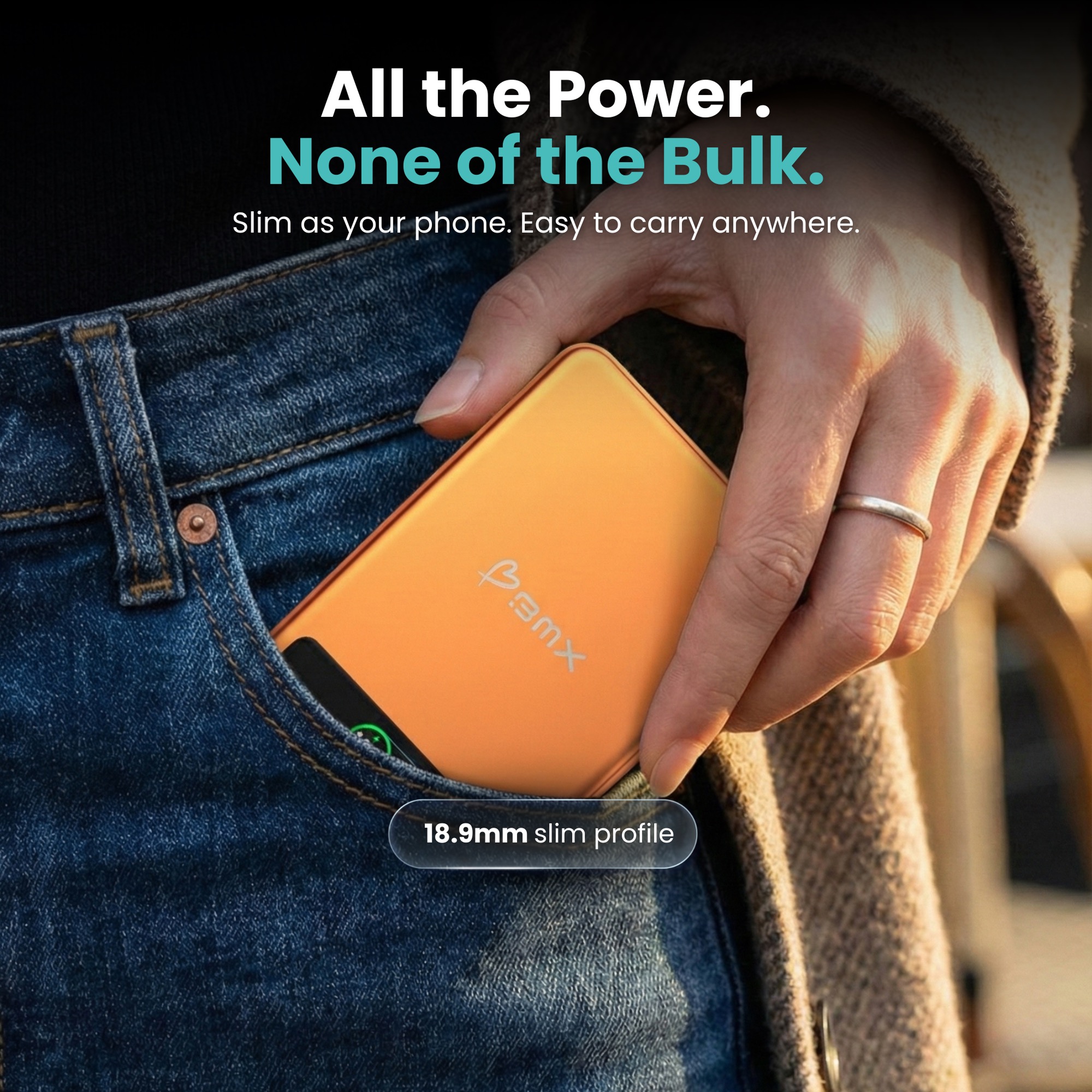 BMX SolidSafe Air - Ultradünne 5'000mAh Semi-Solid State MagSafe Power Bank mit 20 Watt Leistung und MagSafe sowie Qi2 Wireless Charging Funktion - Black