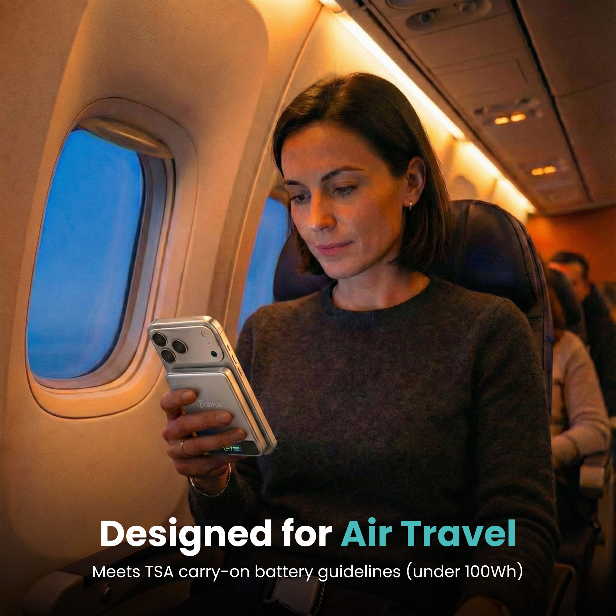 Die SolidSafe 5K ist eine Powerbank mit 10.000 mAh, die speziell zur Verringerung der Brandgefahr entwickelt wurde. Halb-Festkörper-Batteriezellen enthalten nur einen Bruchteil der brennbaren Flüssigkeit, die in herkömmlichen Lithium-Ionen-Batterien zu finden ist, und sind so konzipiert, dass sie thermischen Ausfällen widerstehen, die zur Entzündung von Batterien führen. Das ist der Grund, warum Powerbanks zurückgerufen werden. Das ist der Grund, warum Fluggesellschaften sie einschränken. Dies löst das Problem. Qi2-magnetisches kabelloses Laden, 20-W-Schnellladen, Vollfarb-LCD-Display, integriertes Kabel.Solid-State-Zelldesign