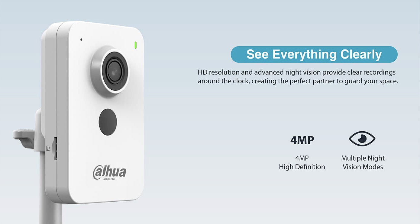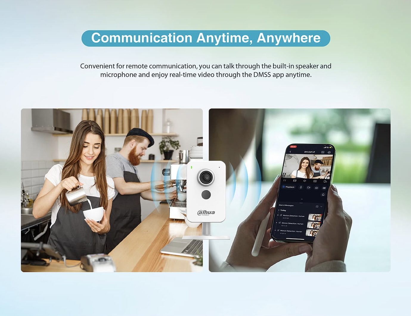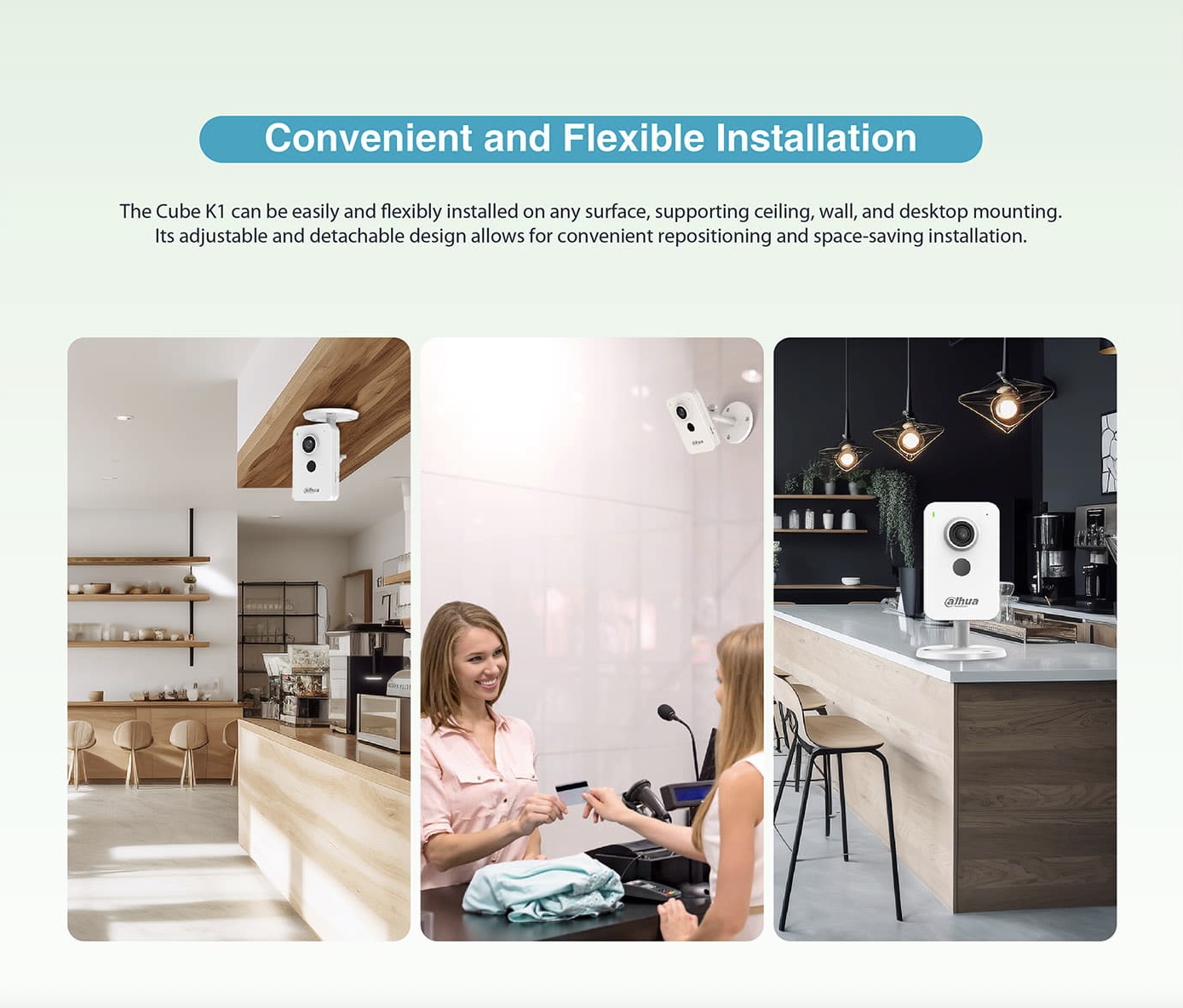 Die Cube-Serie, die zur Dahua Wireless-Serie gehört, ist eine Kamera, die nicht nur einfach zu installieren und zu bedienen ist, sondern auch eine hervorragende Leistung bietet und kostengünstig ist. Sie nehmen scharfe, detaillierte Bilder von Szenen in High Definition auf und bieten leistungsstarke Funktionen wie KI-Menschenerkennung, Privatsphäre-Modus und Zwei-Wege-Gespräche. Die Informationen werden synchron an Ihr Telefon gesendet, damit Sie immer auf dem Laufenden sind. Diese Kameras werden häufig in kleinen und mittelgroßen Umgebungen eingesetzt, z. B. in kleinen Einzelhandelsgeschäften.Flexible Anschlussmöglichkeiten