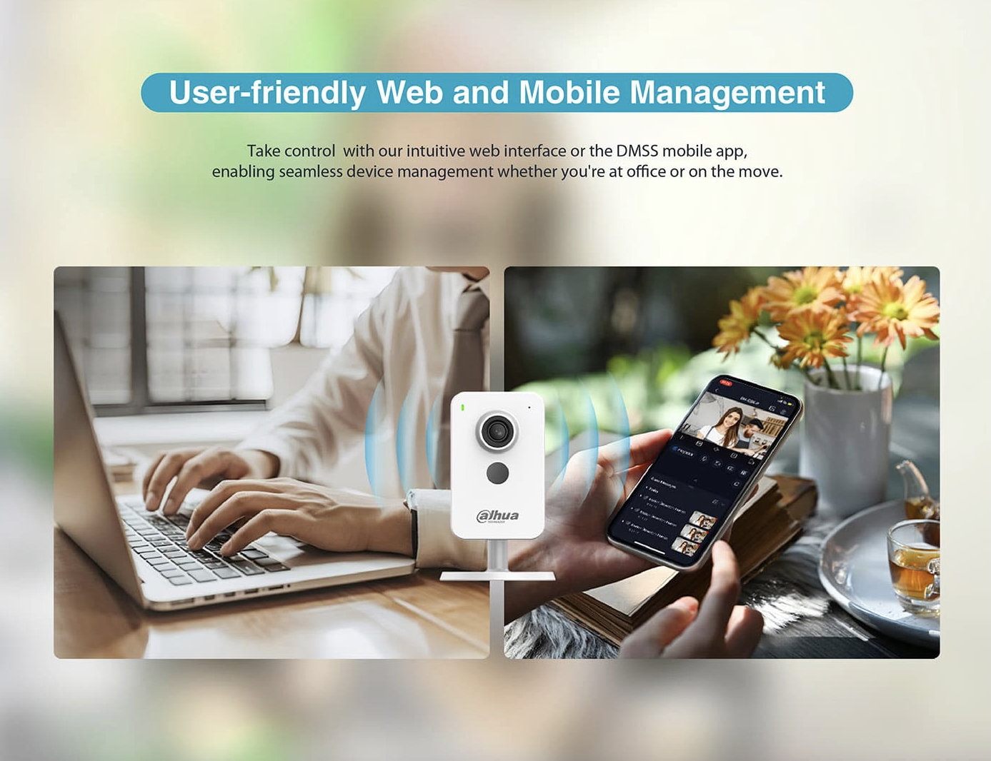 Übernehmen Sie die Kontrolle mit unserer intuitiven Weboberfläche oder der DMSS-Mobil-App, die eine nahtlose Geräteverwaltung ermöglicht, egal ob Sie zu Hause oder unterwegs sind.