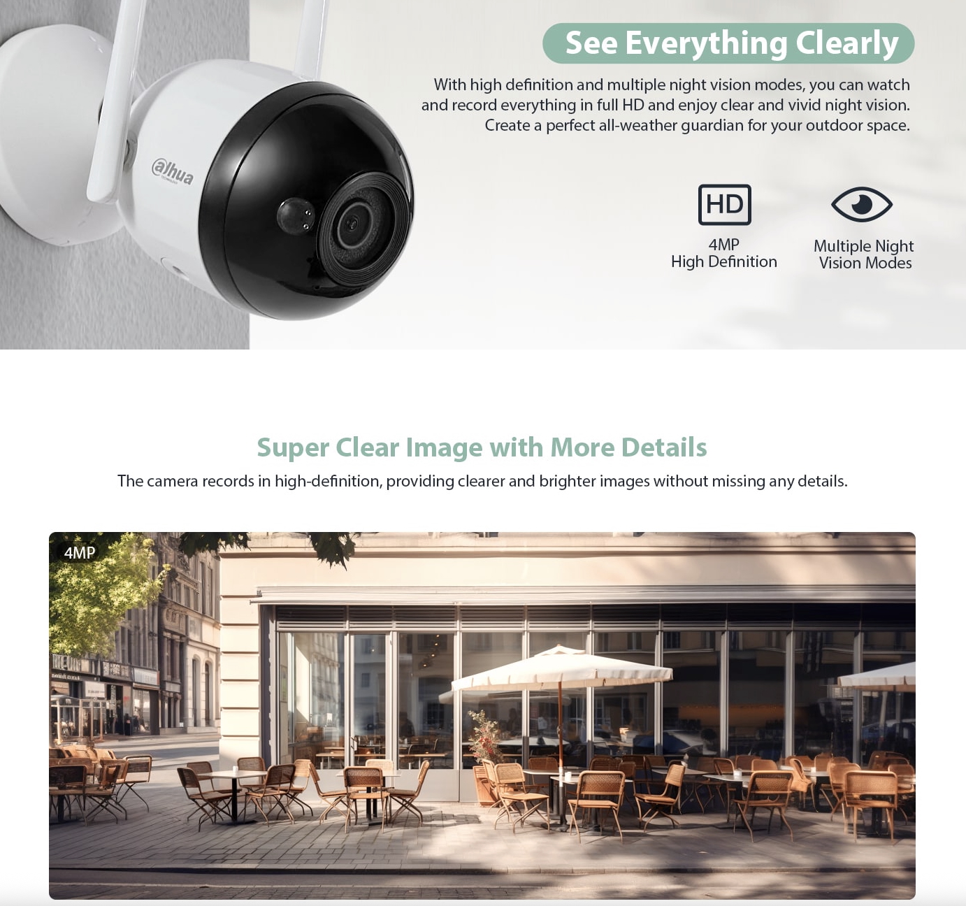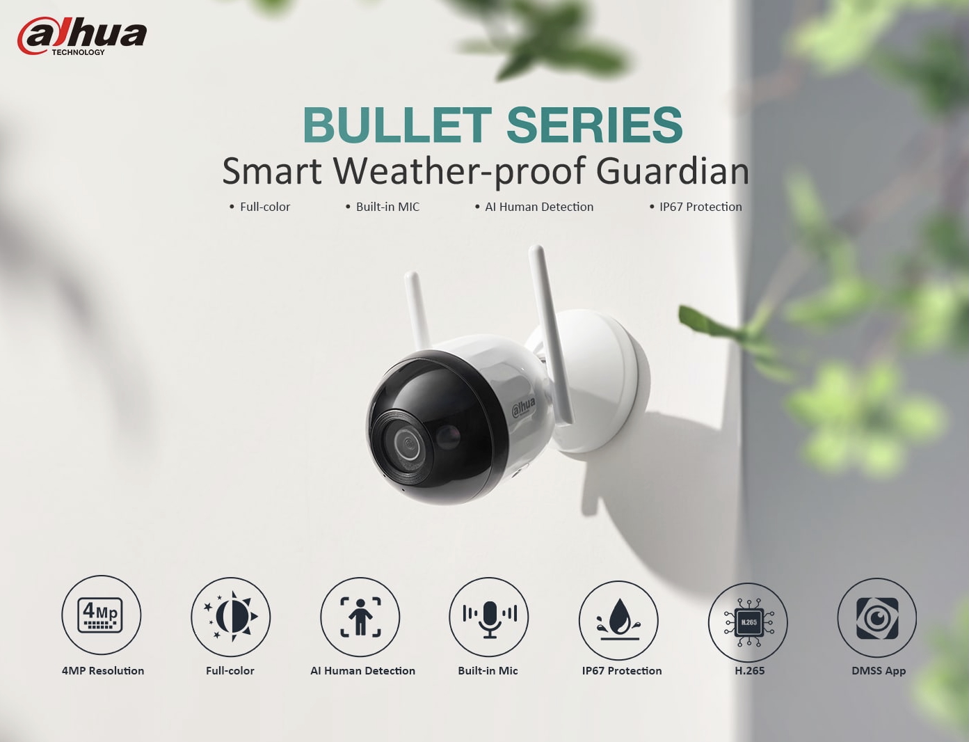 Die Bullet-Serie, die zur Dahua Wireless-Serie gehört, ist eine Kamera, die nicht nur einfach zu installieren und zu bedienen ist, sondern auch eine hervorragende Leistung bietet und kostengünstig ist. Sie nehmen scharfe, detaillierte Bilder von Szenen in High Definition auf und bieten leistungsstarke Funktionen, wie z. B. die KI-Menschenerkennung, um präzise Alarme auszulösen. Die Informationen werden außerdem synchron an Ihr Telefon gesendet, damit Sie immer auf dem Laufenden sind. Dank der Schutzart IP67 halten diese Kameras auch rauen Umgebungen stand und eignen sich daher hervorragend für den Einsatz in kleinen und mittelgroßen Umgebungen, z. B. in kleinen Einzelhandelsgeschäften.Alles klar & deutlich sehen