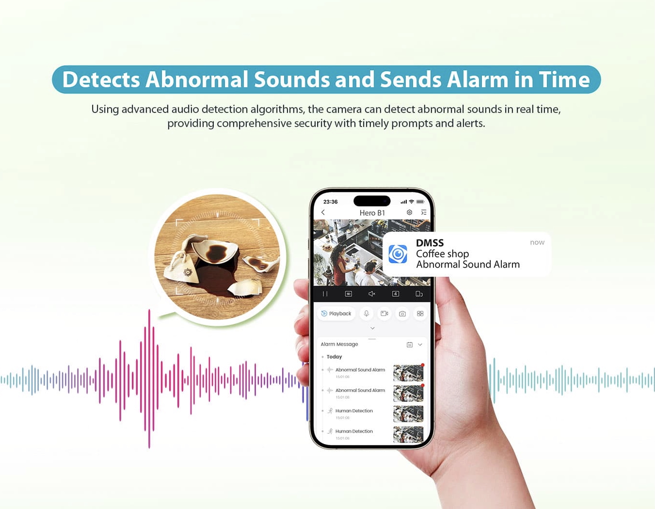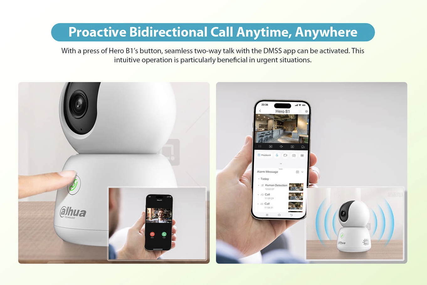 Mit einem Tastendruck auf den Button der Kamera kann ein nahtloses Zwei-Wege-Gespräch mit der DMSS-App aktiviert werden. Diese intuitive Bedienung ist besonders in dringenden Situationen von Vorteil.