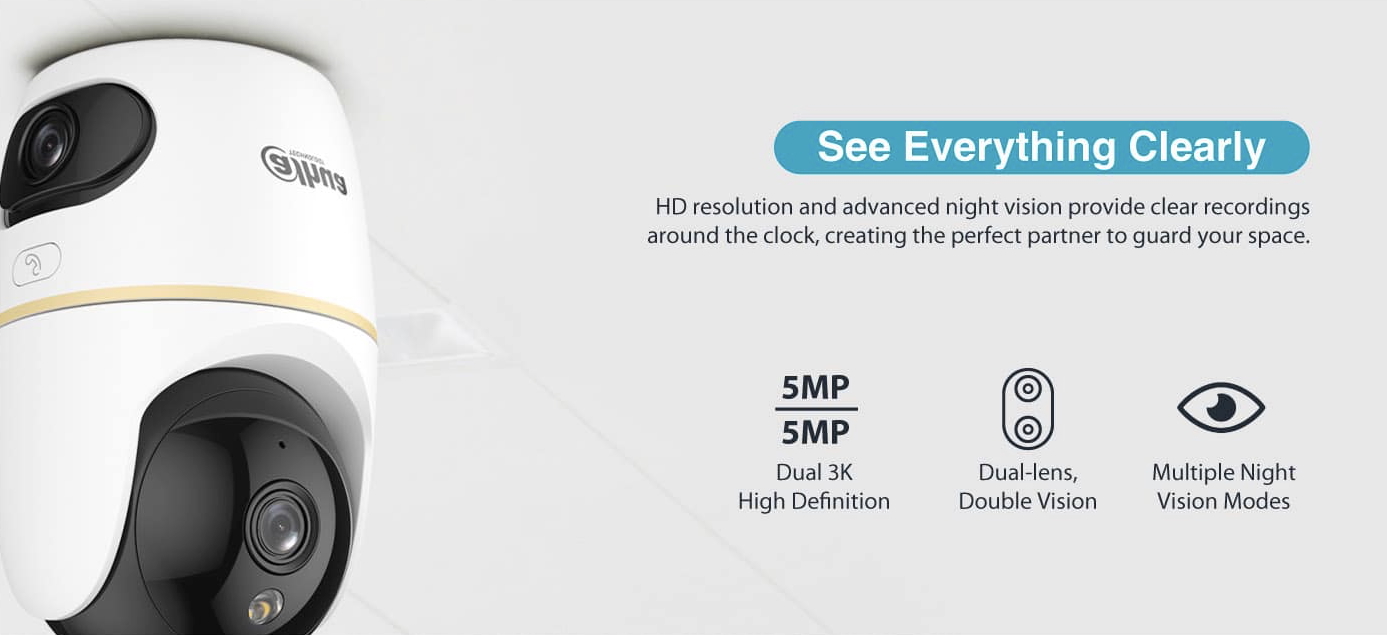 2x 349° schwenk- & 90° neigbare WLAN Überwachungskamera mit 2 Linsen mit je 5MP & einer Auflösung von 2880 x 1620, mit KI Personen- & Tiererkennung, 2-Wege-Audio, Nachtsicht, proaktiver Anruf mit einem Klick auf der Kamera, sowie Sound & Lichtalarm (Micro-SD Speicherkarte bis zu 256GB) - Weiss
