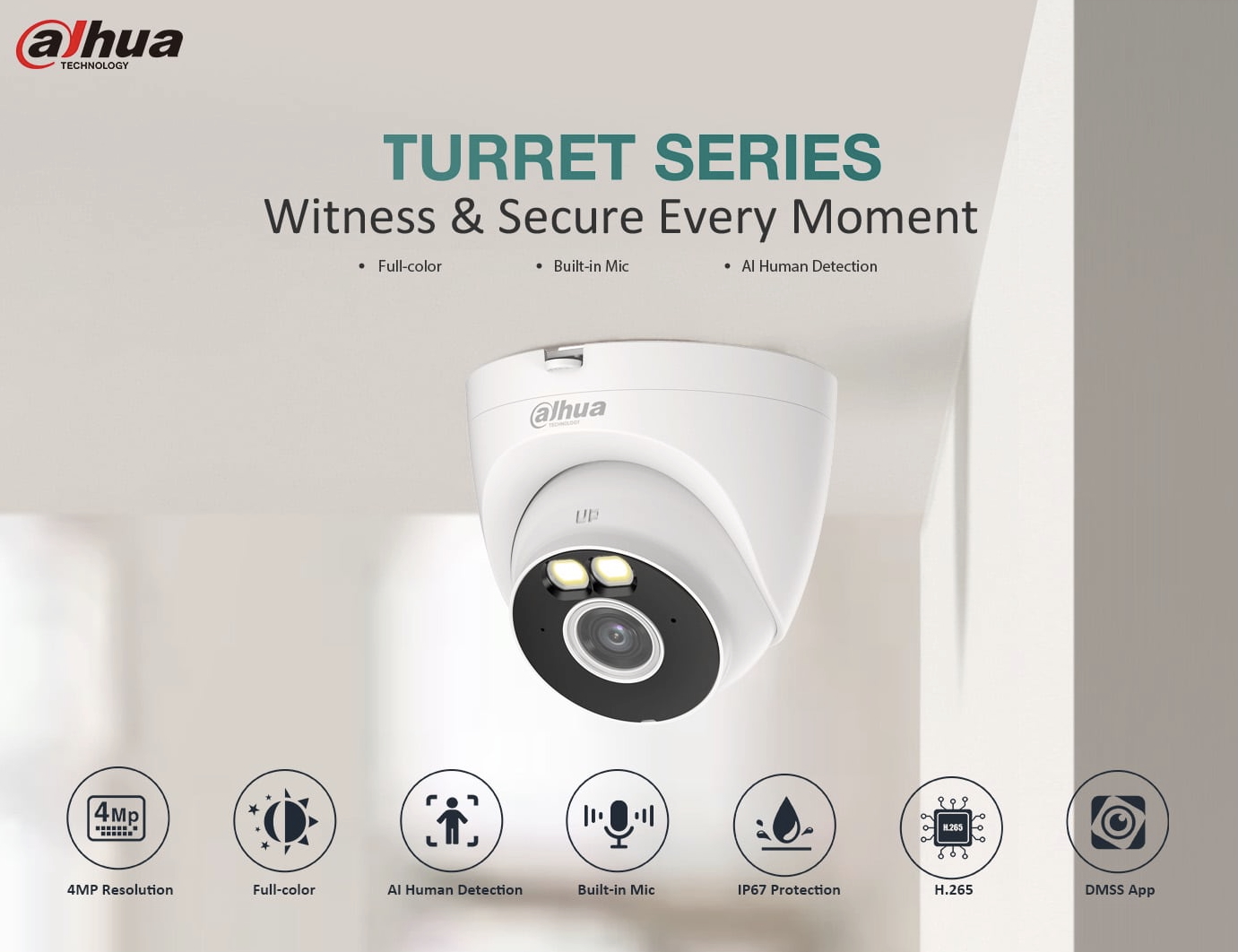 Bei der Turret-Serie, die zur Dahua Wireless-Serie gehört, handelt es sich um Kameras, die nicht nur einfach zu installieren und zu bedienen sind, sondern auch eine hervorragende Leistung bieten und kostengünstig sind. Sie nehmen scharfe, detaillierte Bilder von Szenen in High Definition auf und bieten leistungsstarke Funktionen, wie z. B. die KI-Menschenerkennung, um präzise Alarme auszulösen. Die Informationen werden außerdem synchron an Ihr Telefon gesendet, damit Sie immer auf dem Laufenden sind. Dank der Schutzart IP67 halten diese Kameras auch rauen Umgebungen stand und eignen sich daher hervorragend für den Einsatz in kleinen und mittelgroßen Umgebungen, z. B. in kleinen Einzelhandelsgeschäften.