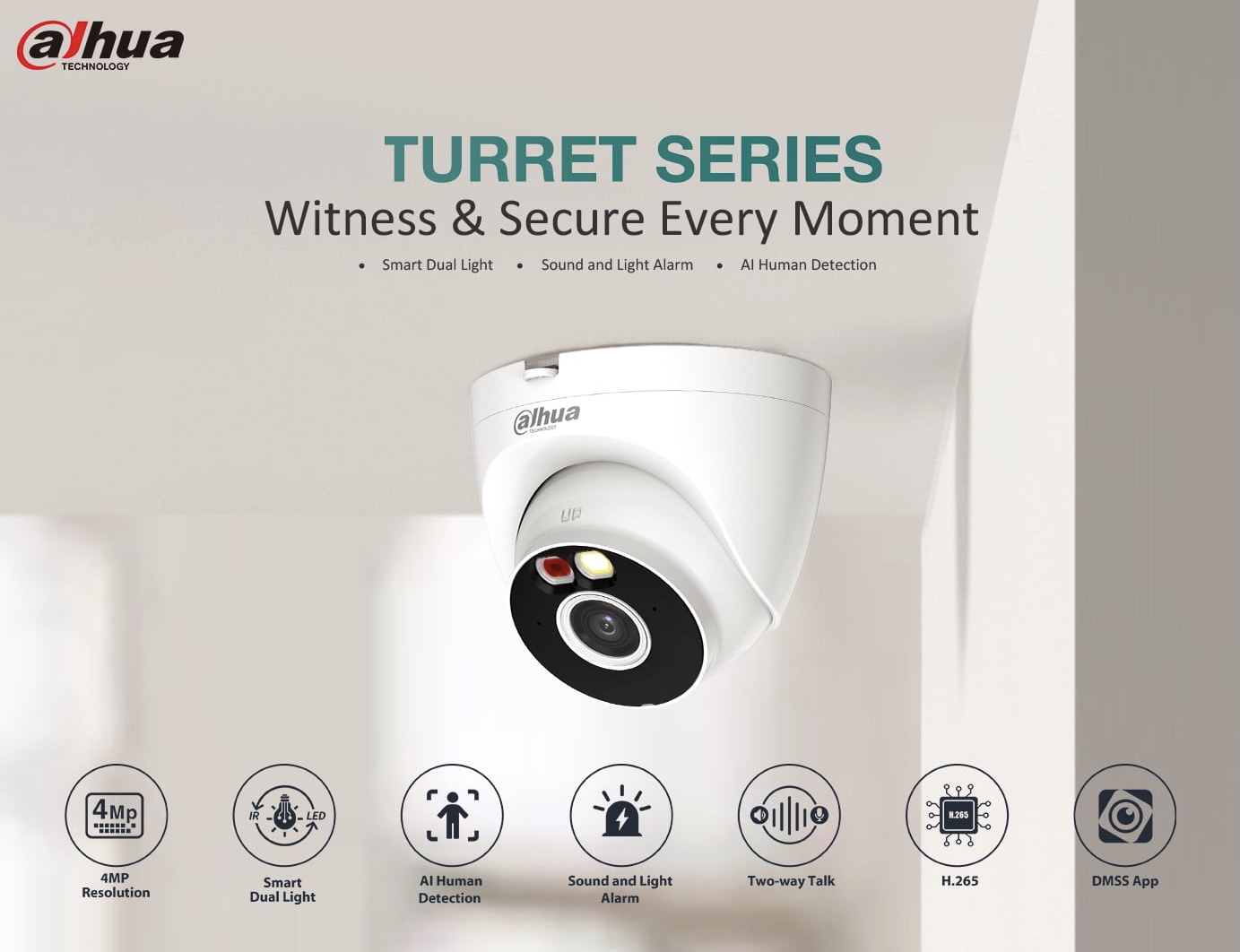 Bei der Turret-Serie, die zur Dahua Wireless-Serie gehört, handelt es sich um Kameras, die nicht nur einfach zu installieren und zu bedienen sind, sondern auch eine hervorragende Leistung bieten und kostengünstig sind. Sie nehmen scharfe, detaillierte Bilder von Szenen in High Definition auf und bieten leistungsstarke Funktionen, wie z. B. die KI-Menschenerkennung, um präzise Alarme auszulösen. Die Informationen werden außerdem synchron an Ihr Telefon gesendet, damit Sie immer auf dem Laufenden sind. Dank der Schutzart IP67 halten diese Kameras auch rauen Umgebungen stand und eignen sich daher hervorragend für den Einsatz in kleinen und mittelgroßen Umgebungen, z. B. in kleinen Einzelhandelsgeschäften.Alles klar & hochauflösend sehen