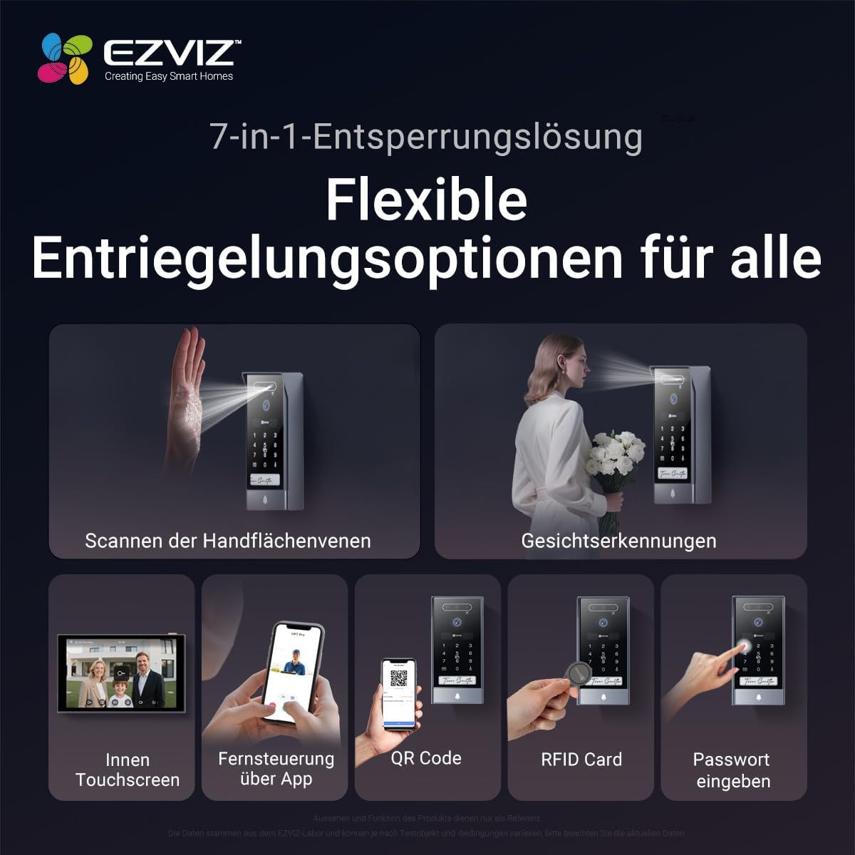 Die HP7 Pro erkennt Familie und Freunde mit ihren einzigartigen Merkmalen sofort und kombiniert modernste Entriegelungsmethoden, während Ihr Seelenfrieden an erster Stelle steht. Sie werden in dem Moment alarmiert, in dem sich jemand nähert, können ihn in einem ultraklaren Video sehen und mit ihm sprechen und sich sogar mit anderen EZVIZ-Produkten verbinden - alles von einem Gerät aus. Die nächste Stufe der Sicherheit, entwickelt für ein einfaches und intelligentes Leben, beginnt jetzt an Ihrer Haustür.Gebaut, um für Villen zuverlässig zu sein