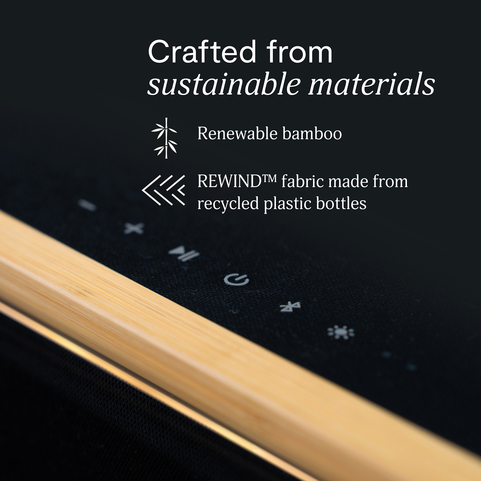 Mit Bambus-Finish für natürliche Eleganz und REGRIND Silikon – hergestellt aus recycelten Silikonresten, die sonst entsorgt würden - bietet dieser Bluetooth Lautsprecher herausragende Leistung in durchdachtem Design.