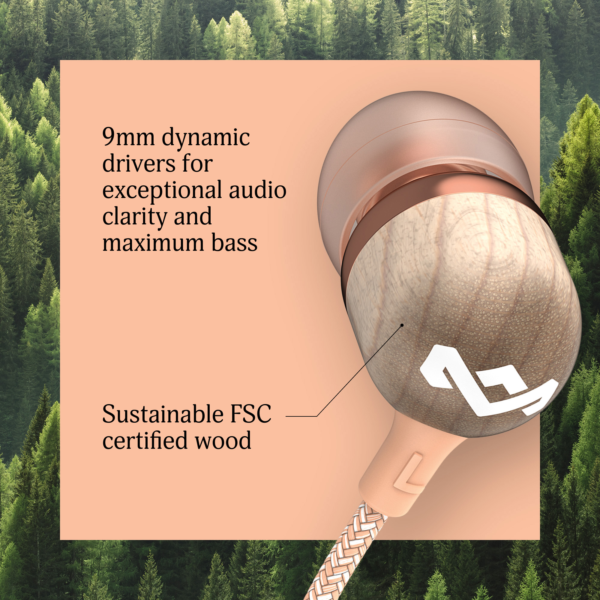 Diese Kopfhörer sind sorgfältig aus Aluminium, FSC-zertifiziertem Holz, REWIND-Gewebe und recyceltem PET gefertigt. Audio-Equipment, das dafür gemacht ist, gesehen und gehört zu werden.