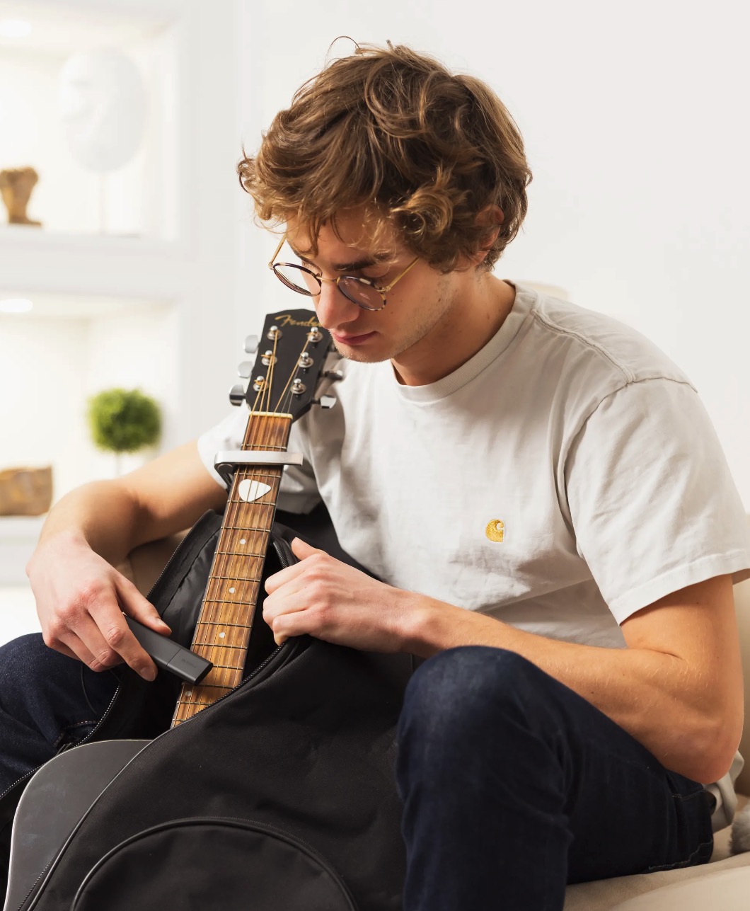 - Material: ABS-Kunststoff, eloxiertes schwarzes Aluminium, Kamelleder
