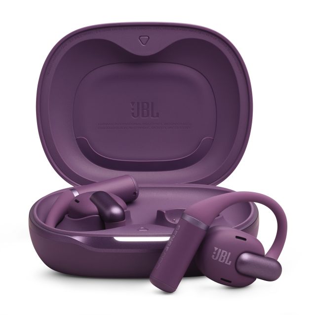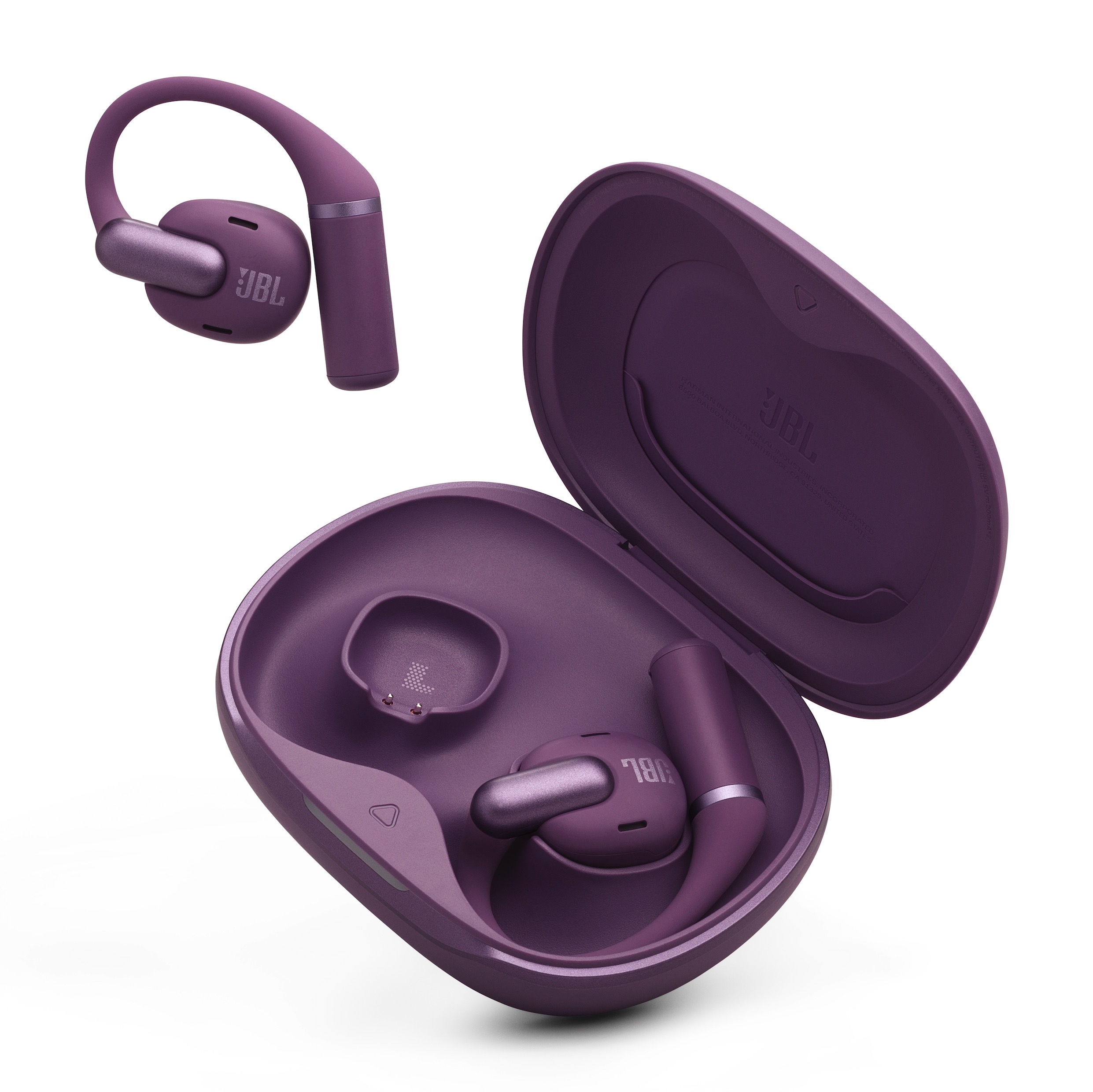 Kabellose Open Ear Kopfhörer mit Air Conduction Technologie (besser wie Bone Conduction), JBL OpenSound-Technologie und Raumsound, 38 Stunden Akkulaufzeit, integriertem Mikrofon & Multipoint-Konnektivität - Purple