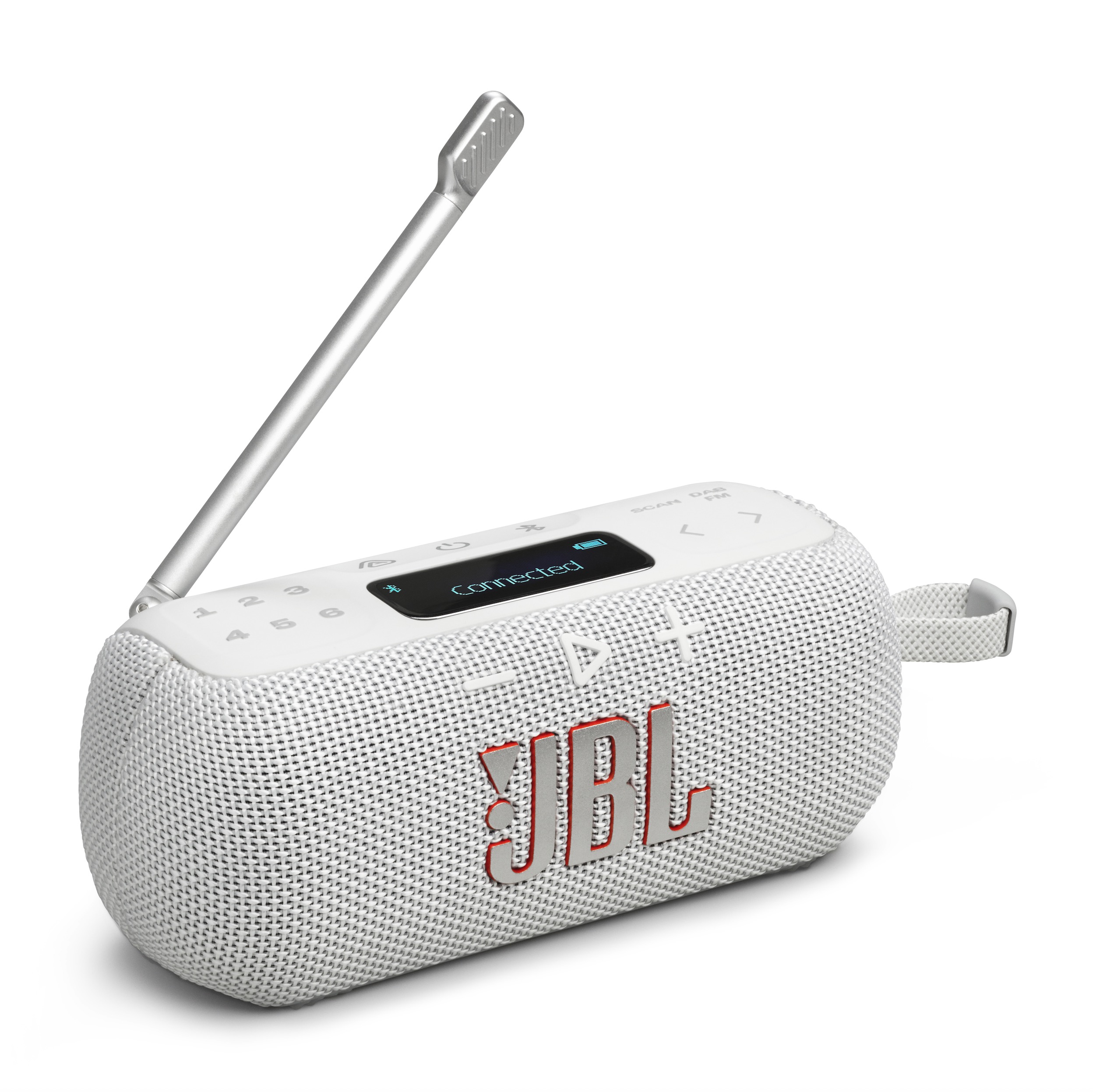 Tragbares DAB/DAB+/UKW Radio inkl. Bluetooth Lautsprecher mit kraftvollem JBL Pro Sound und kristallklarem DAB Radioempfang, IP68 zertifiziert (wasserdicht) & 15 Stunden Akkulaufzeit - Weiss