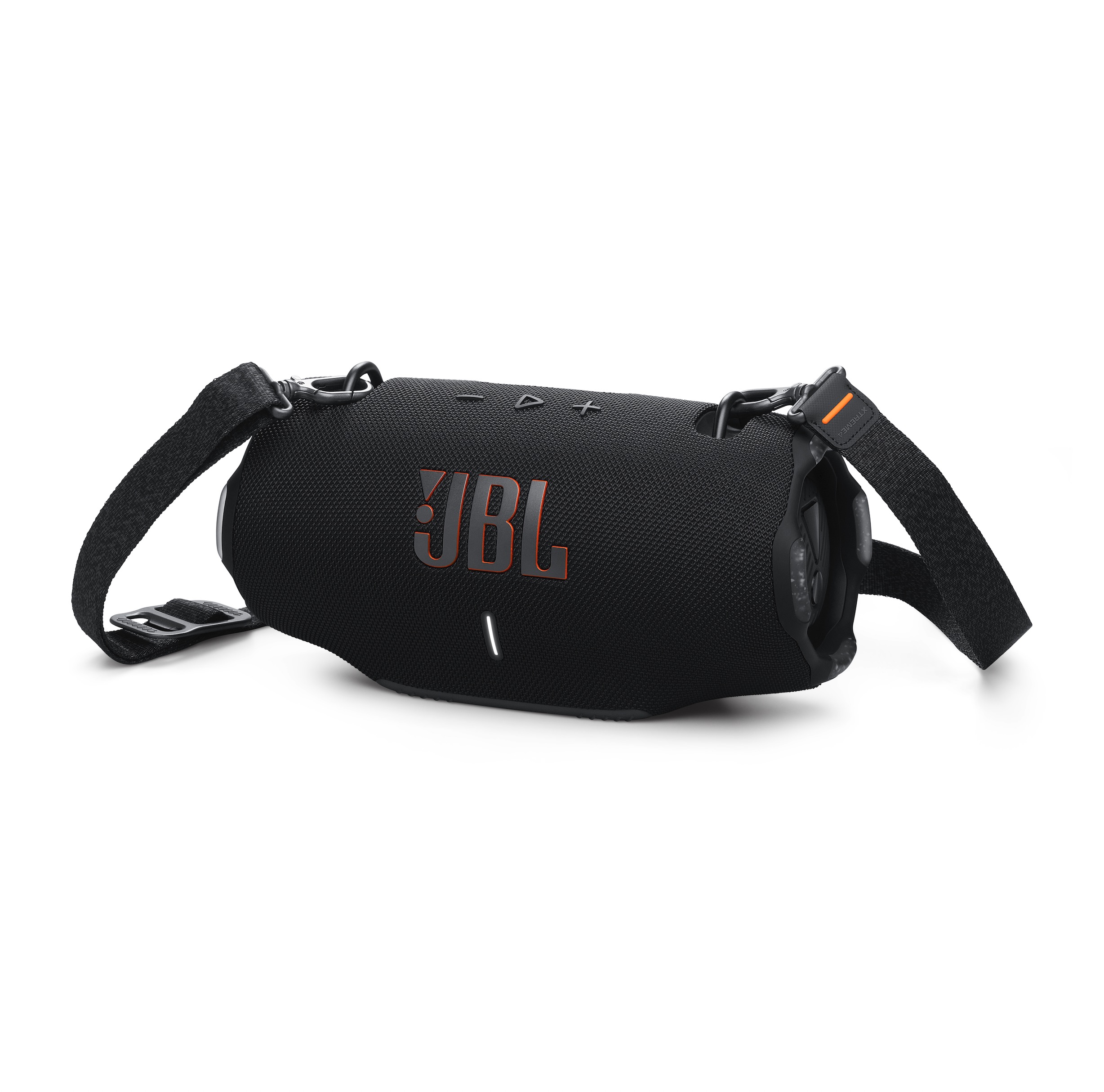 Endlich laut aufdrehen! Der tragbare wasserdichte Lautsprecher JBL Xtreme 4 liefert selbst bei höchster Lautstärke mächtigen JBL Pro Sound der nächsten Stufe mit einer außergewöhnlichen Dynamik, die er zwei leistungsstarken Tieftönern und zwei Hochtönern verdankt. Zwei pumpende JBL Passivradiatoren produzieren einen tieferen Bass, der mitreißt. Du möchtest deine Musik mit nach draußen nehmen? Der praktische Schultergurt macht es einfach, während die robuste Gummiummantelung und sein wasserdichtes und staubdichtes Design nach Schutzklasse IP67 sicherstellen, dass ein plötzlicher Regen oder ein Bad im See dem Spaß kein Ende bereiten. Wenn du noch mehr Sound brauchst, koppelst du einfach zwei Xtreme 4 und genießt Stereo-Sound. Für deine nächste Party verbindest du den Xtreme 4 per Auracast mit kompatiblen tragbaren JBL-Lautsprechern. Dann chillen deine Freunde am Pool zur gleichen Playlist wie alle, die sich im Haus aufhalten. Dank 24 Stunden Wiedergabezeit und einer praktischen Powerbank für deinen Lautsprecher reicht es, wenn du ihn erst am Morgen wieder auflädst. Darüber hinaus ist er mit Recycling-Kunststoff und Recycling-Gewebe hergestellt. Der JBL Xtreme 4 liefert mitreißenden Sound – überall.Mächtiger JBL Pro Sound der nächsten Stufe