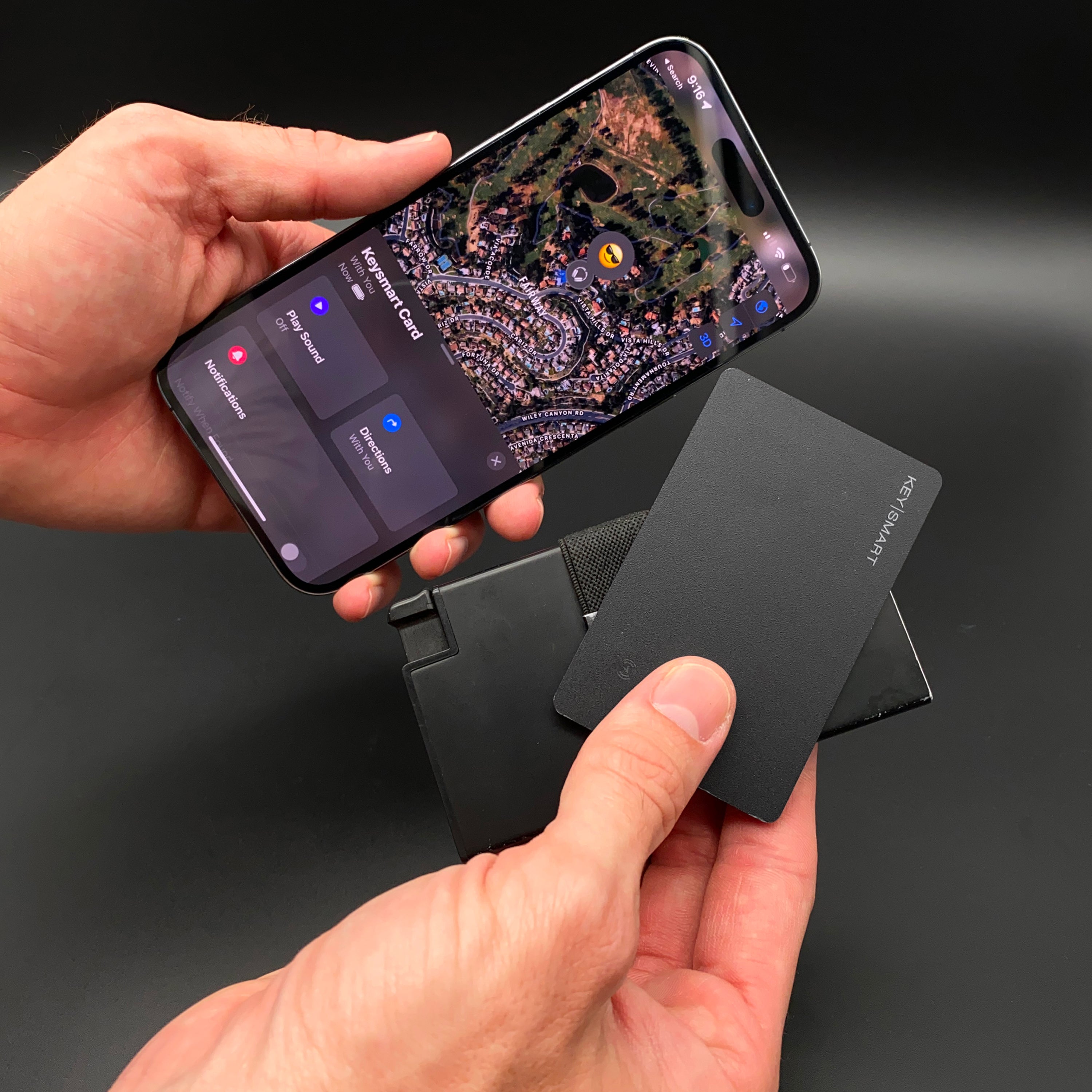 Fügen Sie Ihre KeySmart Card der Find My App auf Ihrem Apple oder Android Gerät hinzu. Spielen Sie einen Ton auf Ihrer KeySmart Card ab, um sie in der Nähe zu finden, oder orten Sie sie mit dem Apple oder Android Find My Netzwerk, mit Hilfe von Millionen von Apple oder Android Geräten auf der ganzen Welt.