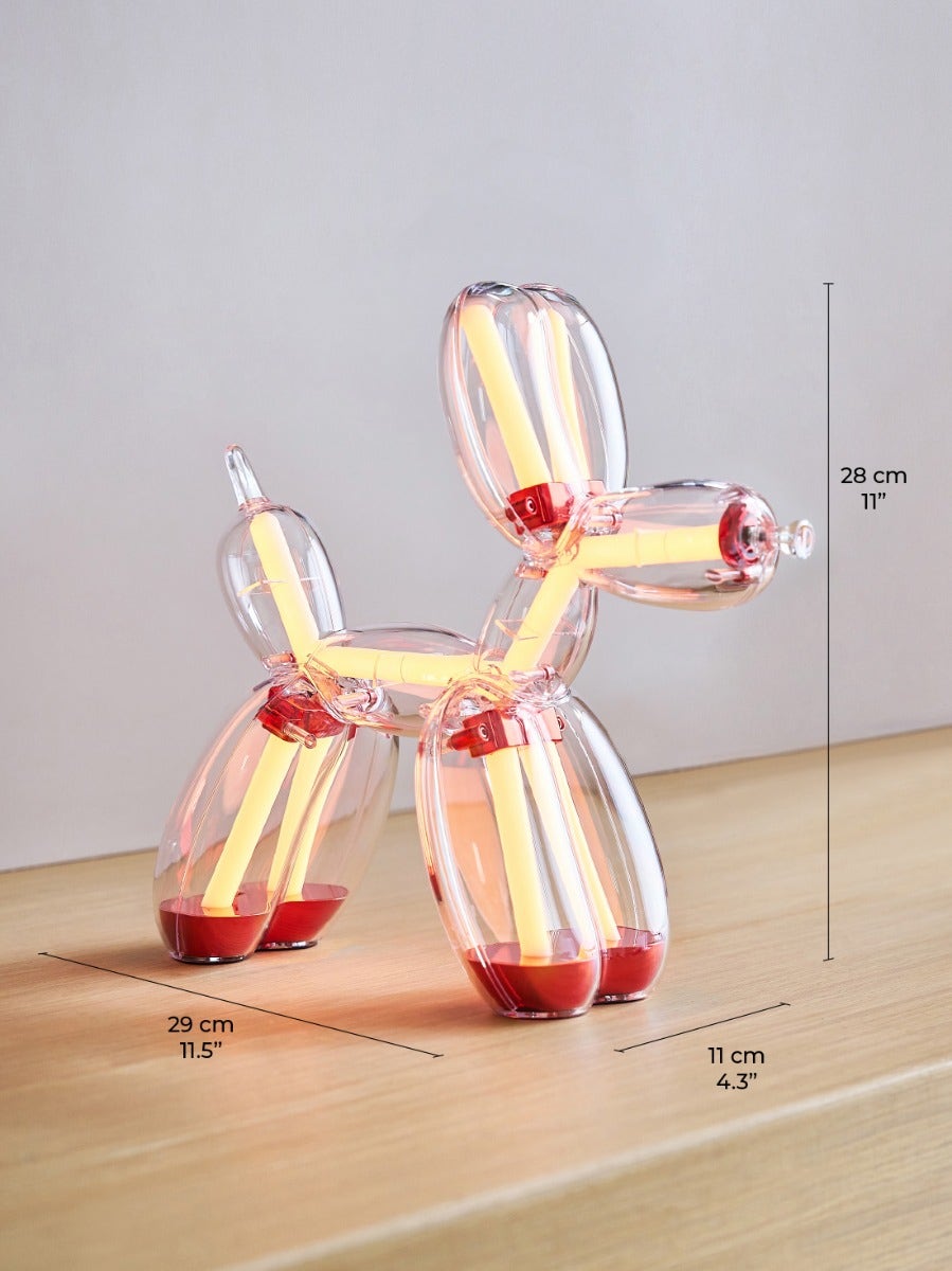 Transparente Lampe Chromatic im Balloon Dog Design by Jeff Koons mit 9 x dimmbaren LED-Farben und 200 Lumen Helligkeit aus optischem Polycarbonat - Red