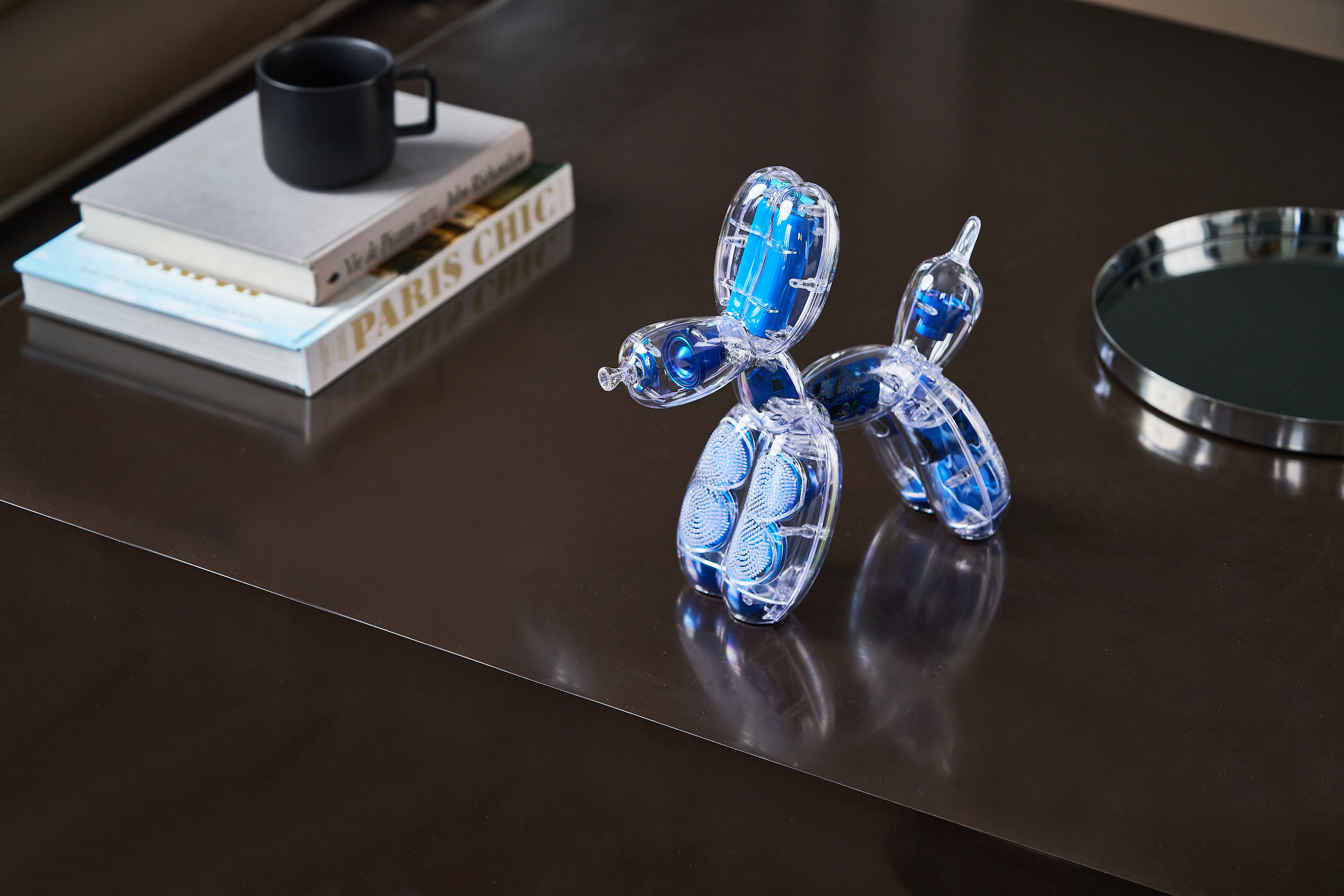 Transparenter Bluetooth Lautsprecher Chromatic im Balloon Dog Design by Jeff Koons mit 6 x aktiven Lautsprecher & 2 x passiven Radiatoren und 360°-Raumklang aus optischem Polycarbonat - Blau