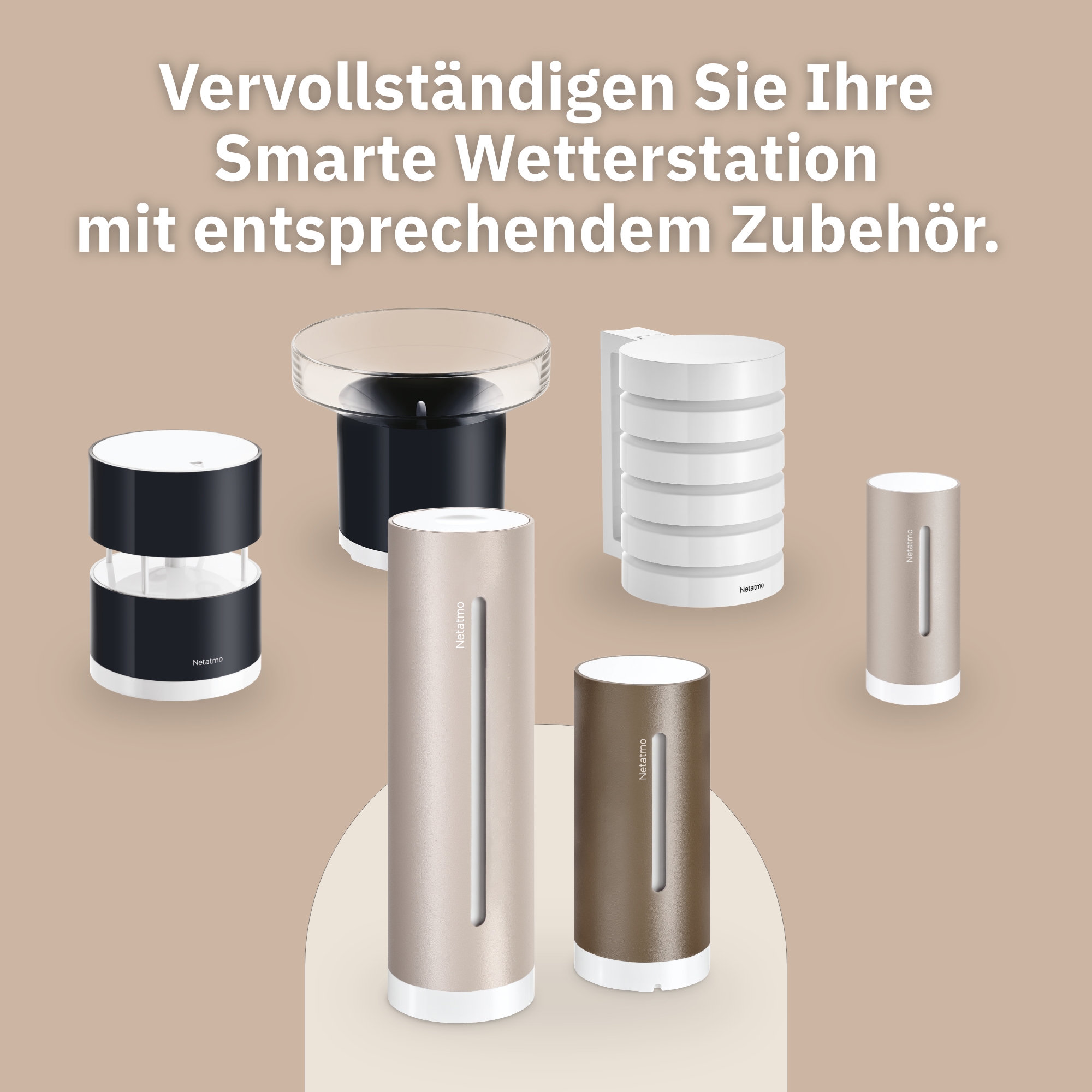 Komplett Paket mit Smarter Wetterstation ORIGINAL 2. Generation + Regen- & Windmesser für Echtzeit-Wettermessungen (Temperatur, Luftfeuchtigkeit, Luftqualität, UV-Index, Pollenflug, Wettervorhersage) kompatibel mit Apple Home, Alexa & Google Home inkl. Regenmesser & Windmesser (Bestehend aus 1x EAN 3700730506656, 1x EAN 3700730500210 & 1x EAN 3700730500227) - Sand