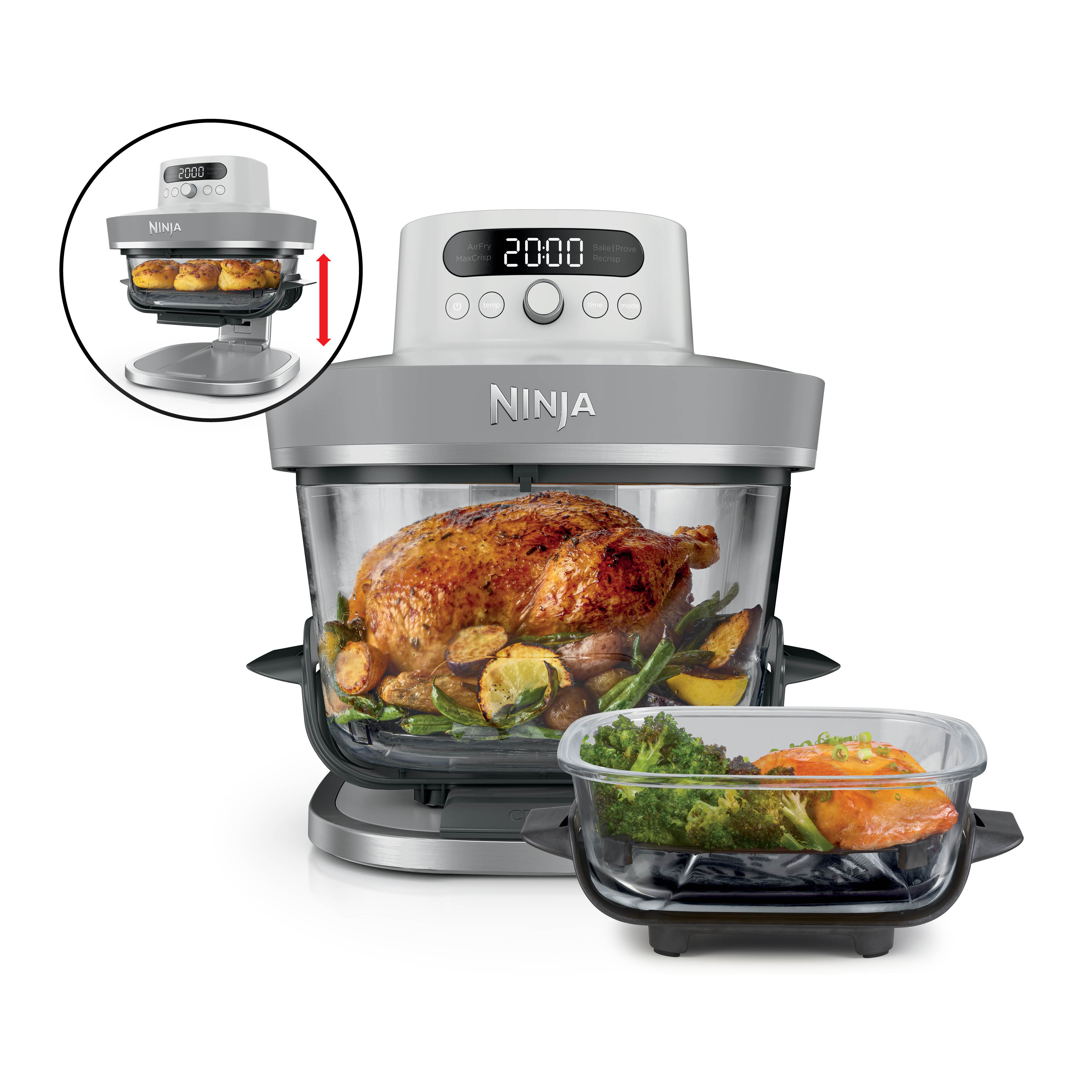 Crispi Pro 5-in-1-Glas-Luftfritteuse, 230 °C, Behälter und Deckel, Mikrowellen-, Gefrierschrank-und spülmaschinenfest, Max Crisp (Max Crisp), Air Fry (Heißluftfrittieren), Bake (Backen), Prove (Teig gehen lassen) und Recrisp (Aufknuspern) - White