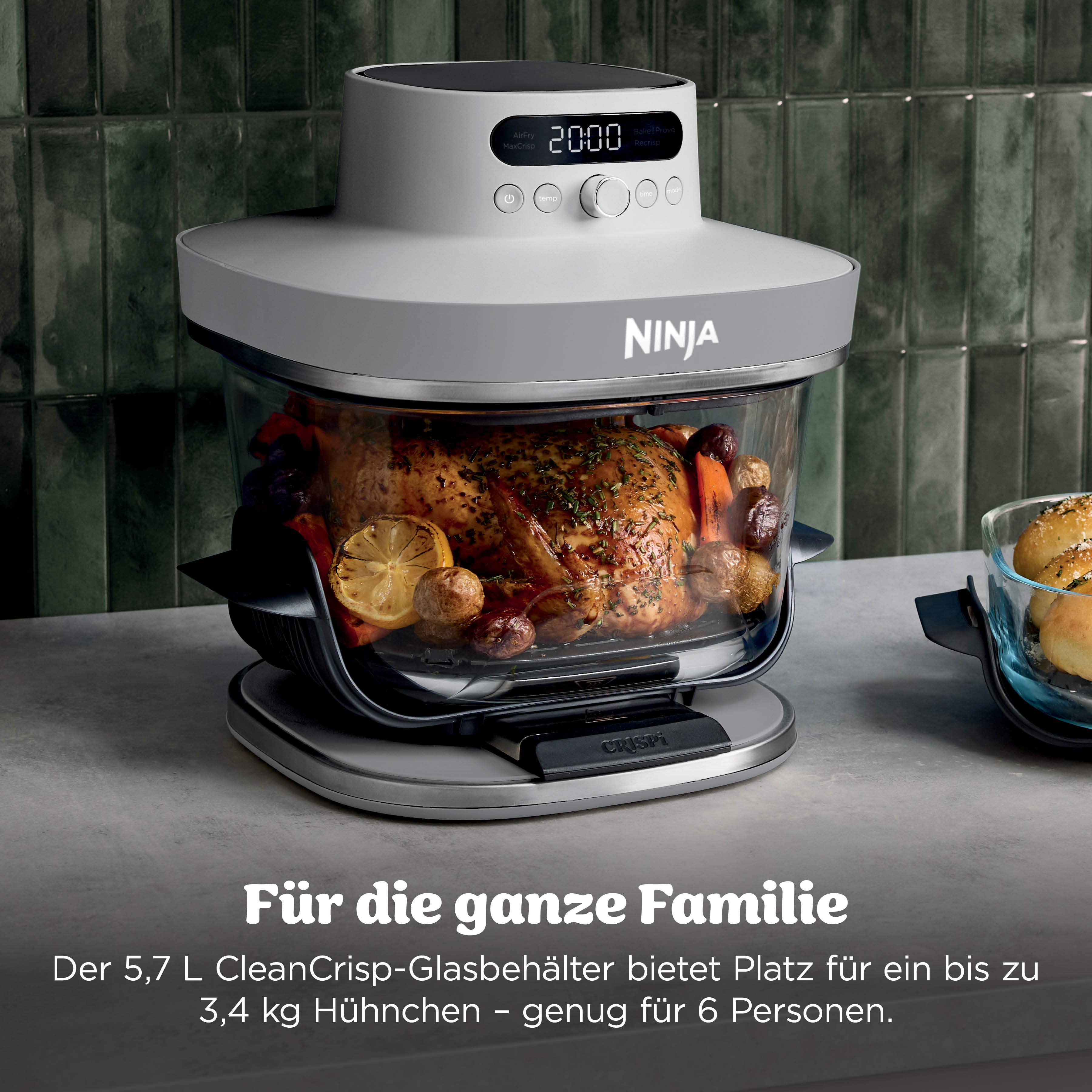Sag Hallo zum Ninja CRISPi PRO – dem XL Glas-Air-Fryer zum Vorbereiten, Zubereiten und Aufbewahren von Speisen. Wähle zwischen 5 voreingestellten Programmen und genieße gesünderes Kochen dank langlebiger, hitzeresistenter Glasbehälter – ganz ohne PFAS.Zaubere mit dem extra-großen 5,7 L Glasbehälter Menüs, die der ganzen Familie schmecken. Oder nimm einfach den kleineren 2,3 L Glasbehälter für Snacks, Beilagen und Vorspeisen. 5 vielseitige Kochfunktionen: Zaubere kleine Snacks oder Menüs für die ganze Familie: mit den voreingestestellten Programmen wie Max Crisp (Max Crisp), Air Fry (Heißluftfrittieren), Bake (Backen), Prove (Teig gehen lassen) und Recrisp (Aufknuspern). Gesünder Kochen: Jedes Gericht einfach bedenkenfrei genießen!