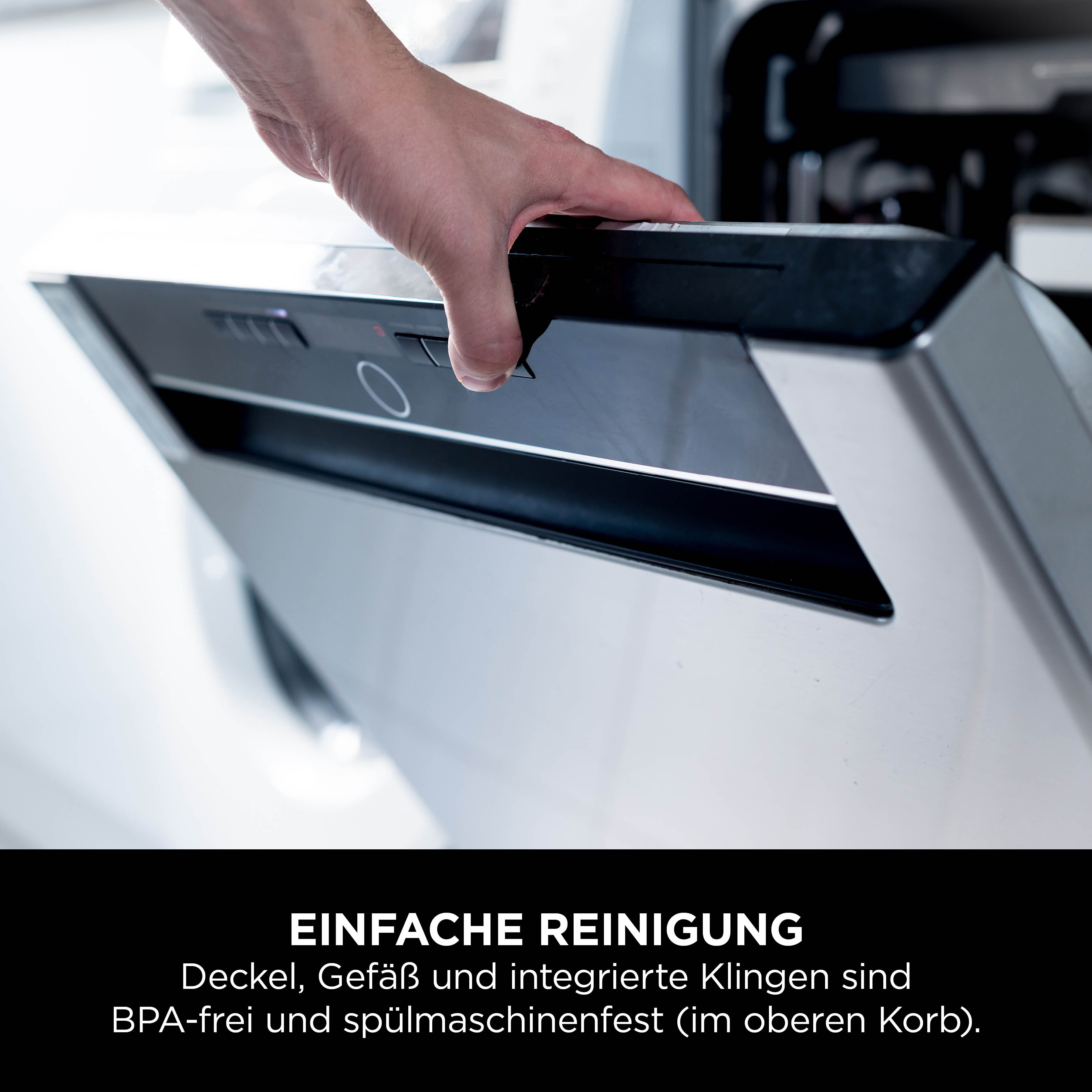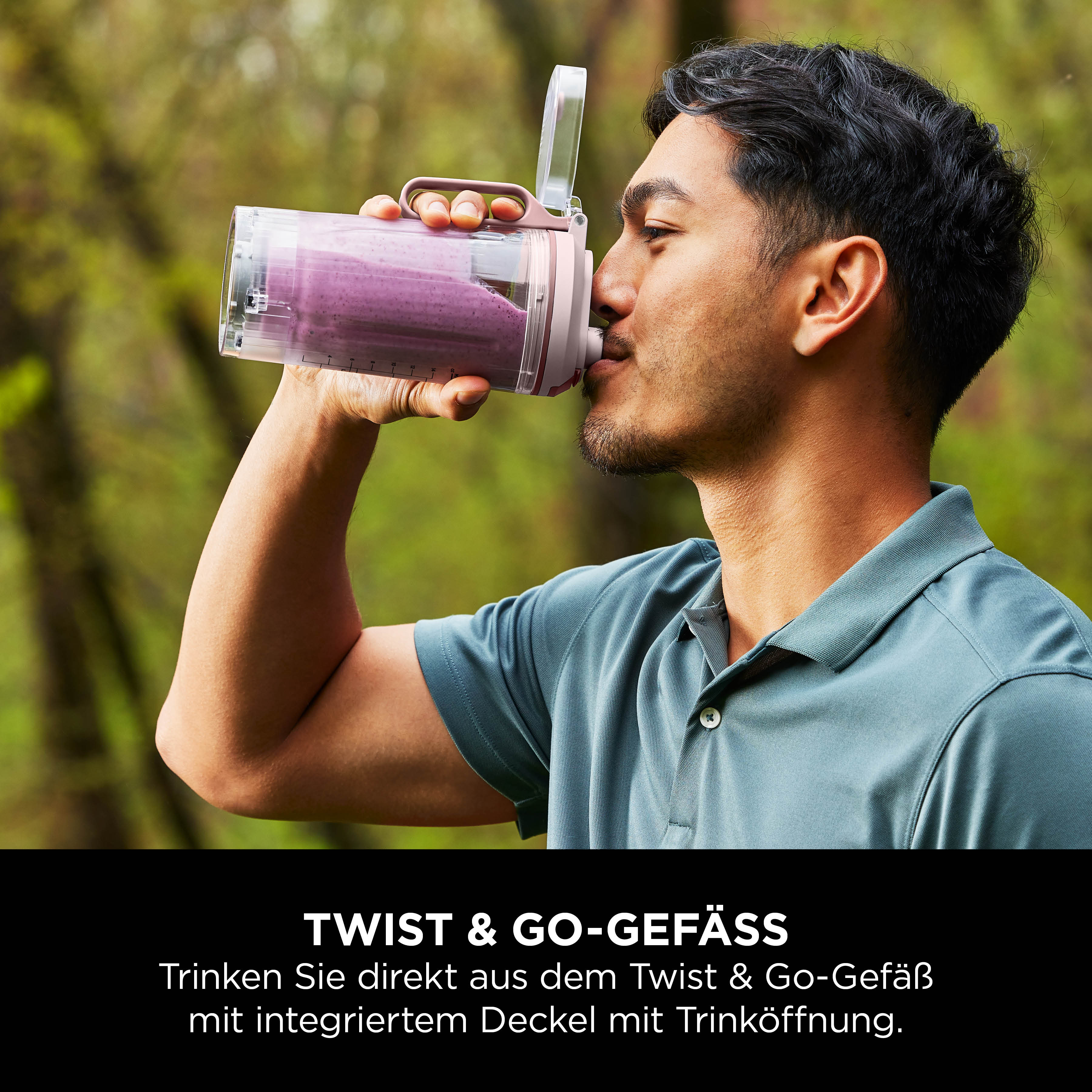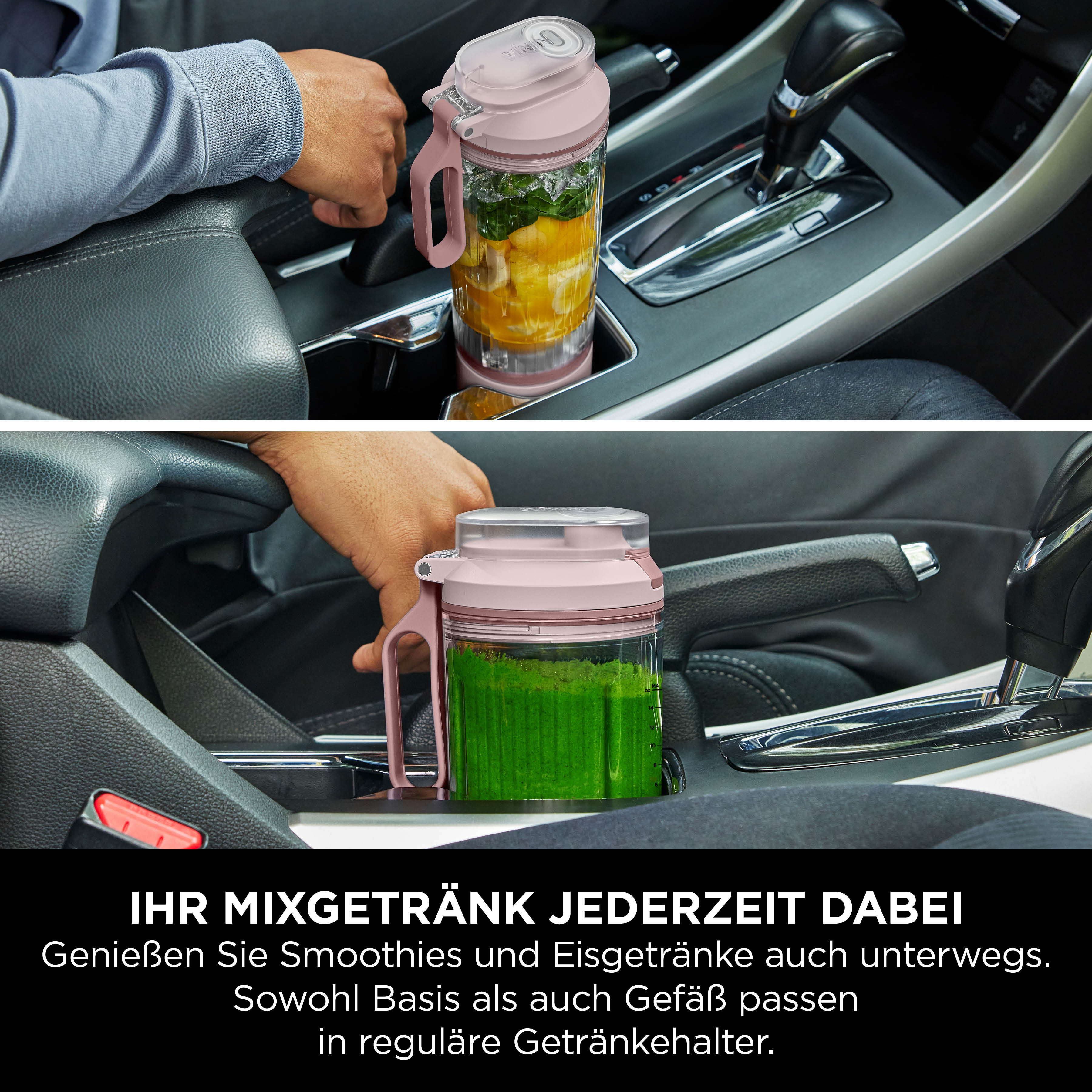 Von nahrhaften Smoothies und Protein-Shakes bis hin zu Marinaden und Kochsaucen können Sie eine Vielzahl köstlicher Rezepte umsetzen – dann drehen Sie einfach den Becher von der Motorbasis und nehmen Ihre Kreationen mit. BPA-frei hergestellt, garantiert der auslaufsichere Deckel, dass beim Transport des Bechers nichts verschüttet wird. Es gibt sogar eine Trageschlaufe und eine Trinköffnung für einfaches Tragen, Trinken und Ausgießen.