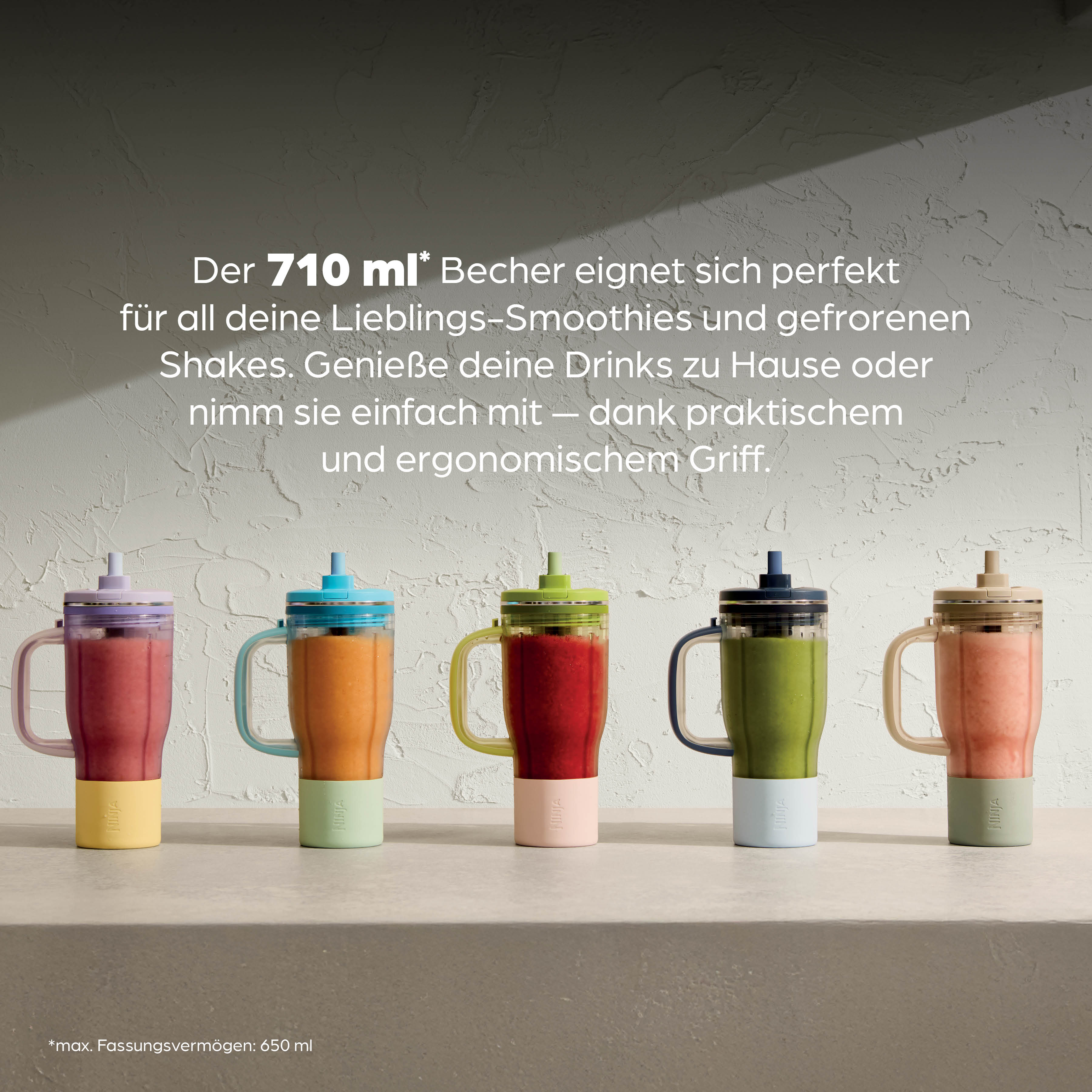 - Mixt die Zutaten direkt im abnehmbaren To-Go-Becher