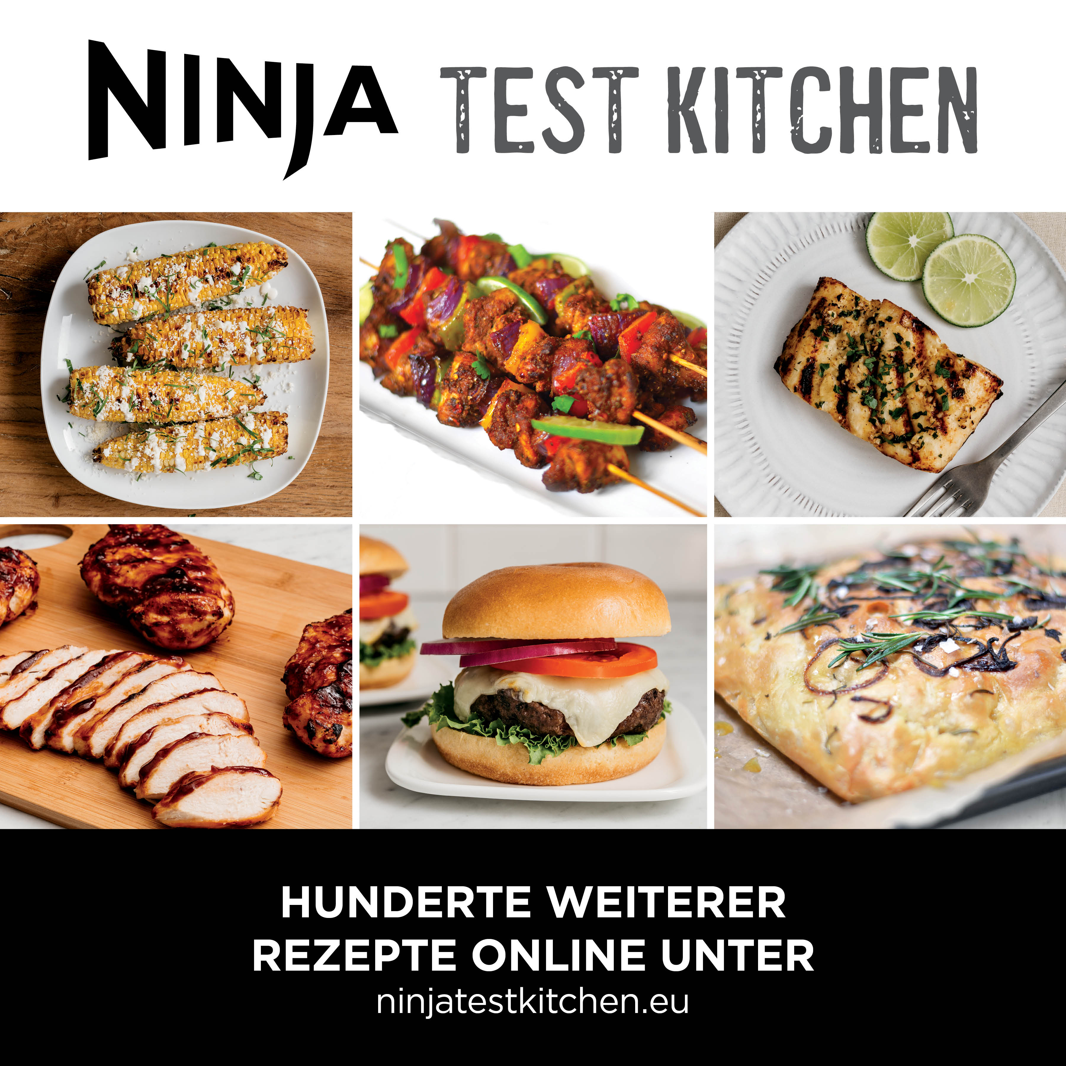 Entdecken Sie die All-in-One-Lösung zum Heißluft-Frittieren, Grillen und mehr. Der Ninja 6-in-1 MAX Grill und Heißluftfritteuse sorgt für authentische Grillaromen, ohne Wenden und mit minimaler Rauchentwicklung. Dank der Cyclonic Air-Technologie sorgt das Grillen bei hoher Temperatur für ein besonders gleichmäßiges Garen und ist dabei bis zu 45 % schneller als Umluftöfen*. Entdecken Sie 6 anpassbare Funktionen: Air Fry (Heißluft-Frittieren), Grill (Grillen), Roast (Braten), Bake (Backen), Dehydrate (Dörren) und Reheat (Aufwärmen). So wird das Kochen für die Familie zum Kinderspiel. Der 3,8-Liter-Kochtopf bietet ausreichend Platz, um einen 1,4 kg schweren Braten zuzubereiten – ideal für bis zu sechs Portionen. Auf die XL-Grillplatte passen bis zu sechs Burger oder Hähnchenfilets. Für wahre Genussmomente: Backen Sie einen Zitronenkuchen oder einen leckeren Nudelauflauf. Von „rare“ bis „well done“ – das Smart-Cook-System sorgt für perfekt gegartes Fleisch und Fisch. Das digitale Bratenthermometer überwacht den Garprozess und zeigt Ihnen an, wann das Essen fertig ist. Die Grillplatte, der Kochtopf und der Knusper-Korb sind mit antihaftbeschichteter, PTFE- und PFOA-freier Keramik beschichtet, und können bequem in der Spülmaschine gereinigt werden. Beinhaltet: Kochtopf (3,8 l), Knusper-Korb (3,8 l), XL-Grillplatte, digitales Bratenthermometer, Spritzschutz, Reinigungsbürste und Rezeptheft. * Getestet mit Fischstäbchen und Würstchen bei Verwendung der Funktion Air Fry (Heißluft-Frittieren).