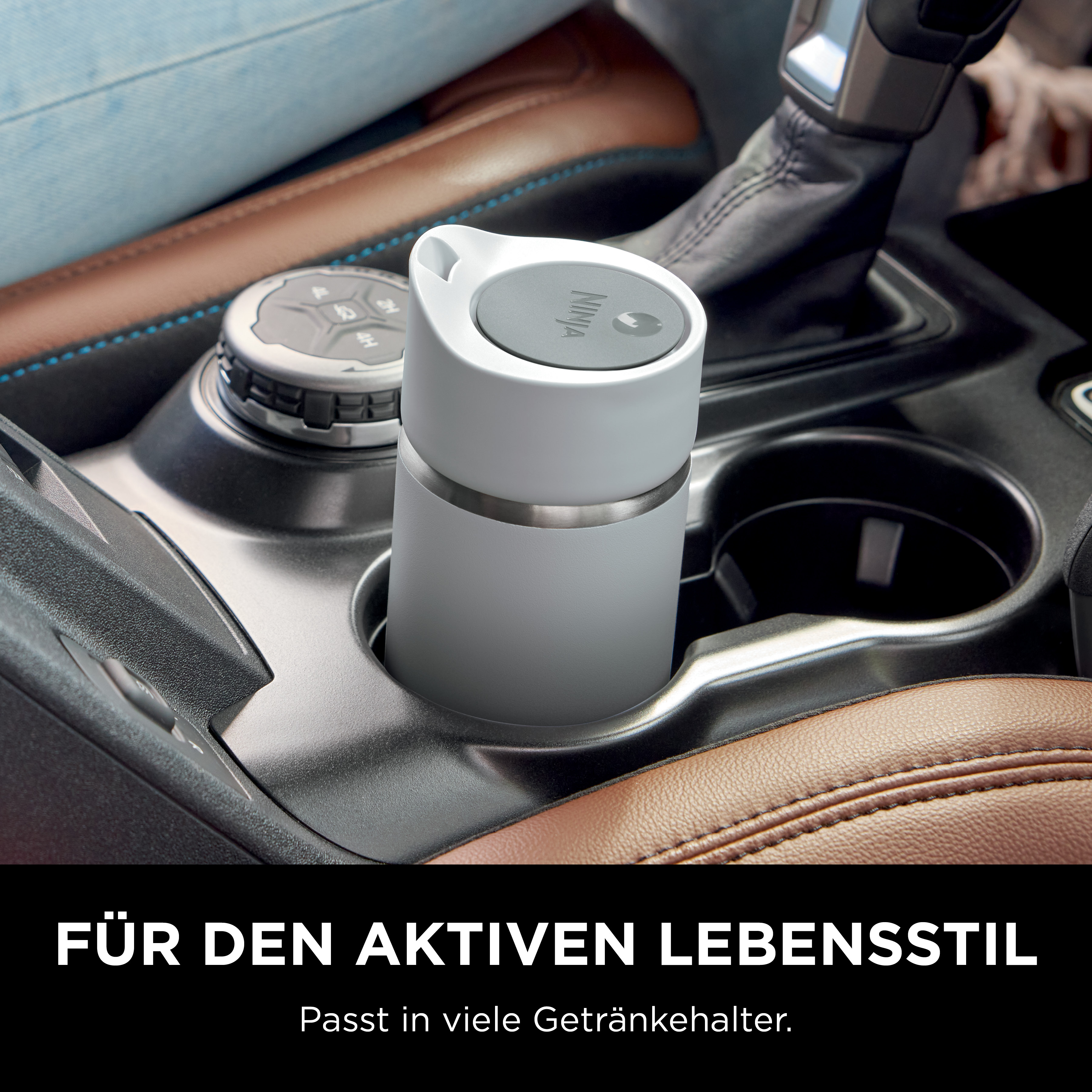 Wir präsentieren den 300-ml-Reisebecher Ninja Sip Perfect in Schwarz- der Becher, der heiße Getränke in Minutenschnelle auf eine angenehme Trinktemperatur herunterkühlt*. Genießen Sie Kaffee, Tee und mehr, wo auch immer Ihr Tag Sie hinführt.Der Sip Perfect Reisebecher wurde speziell für Heißgetränke entwickelt und sorgt dafür, dass Sie diese länger genießen können. Und er ist nicht nur für heiße Getränke geeignet. Mit diesem Edelstahlbecher können Sie unterwegs auch kalte Getränke genießen.