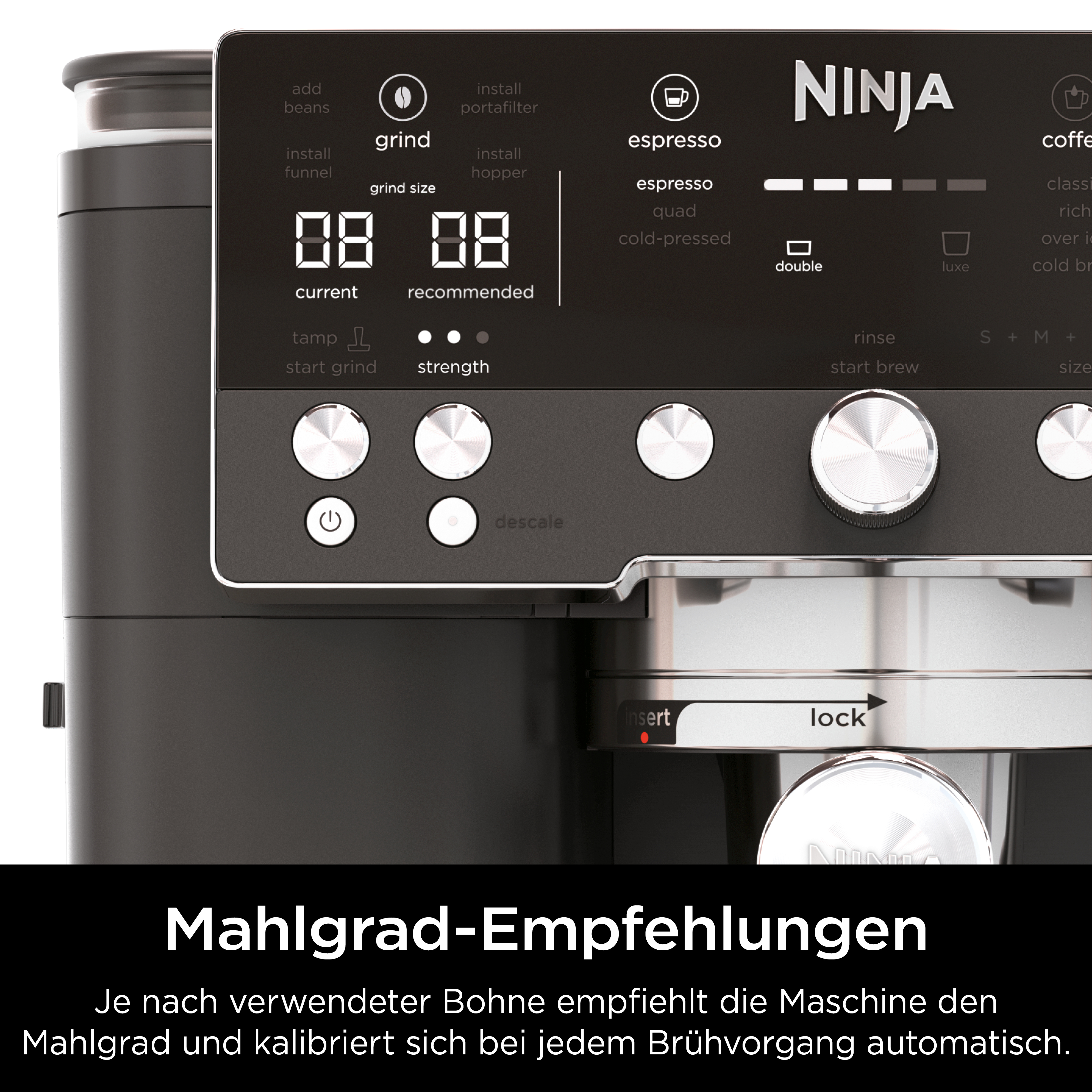 Wir präsentieren Luxe Café Premier, die Kaffeemaschine von Ninja. Von der Bohne bis zur Tasse ermöglicht dieses Gerät die schnelle Zubereitung einer beeindruckenden Vielfalt an heißen und kalten Getränken in Barista-Qualität. Vom integrierten Mahlwerk bis zum praktischen Tamper – dieses 3-in-1-Wunder ermöglicht es Ihnen, das Café-Erlebnis zu Hause zu genießen.Egal, ob Sie Espresso oder erfrischenden Iced Latte bevorzugen, mit der Barista Assist Technology benötigen Sie kein Vorwissen und keine Einweisung. Die automatischen Brühprogramme liefern jedes Mal die perfekte Tasse. Und wenn Sie gerne selber entscheiden, stehen Ihnen 25 Mahlgradeinstellungen zur Verfügung, um Ihren idealen Kaffee zu kreieren.