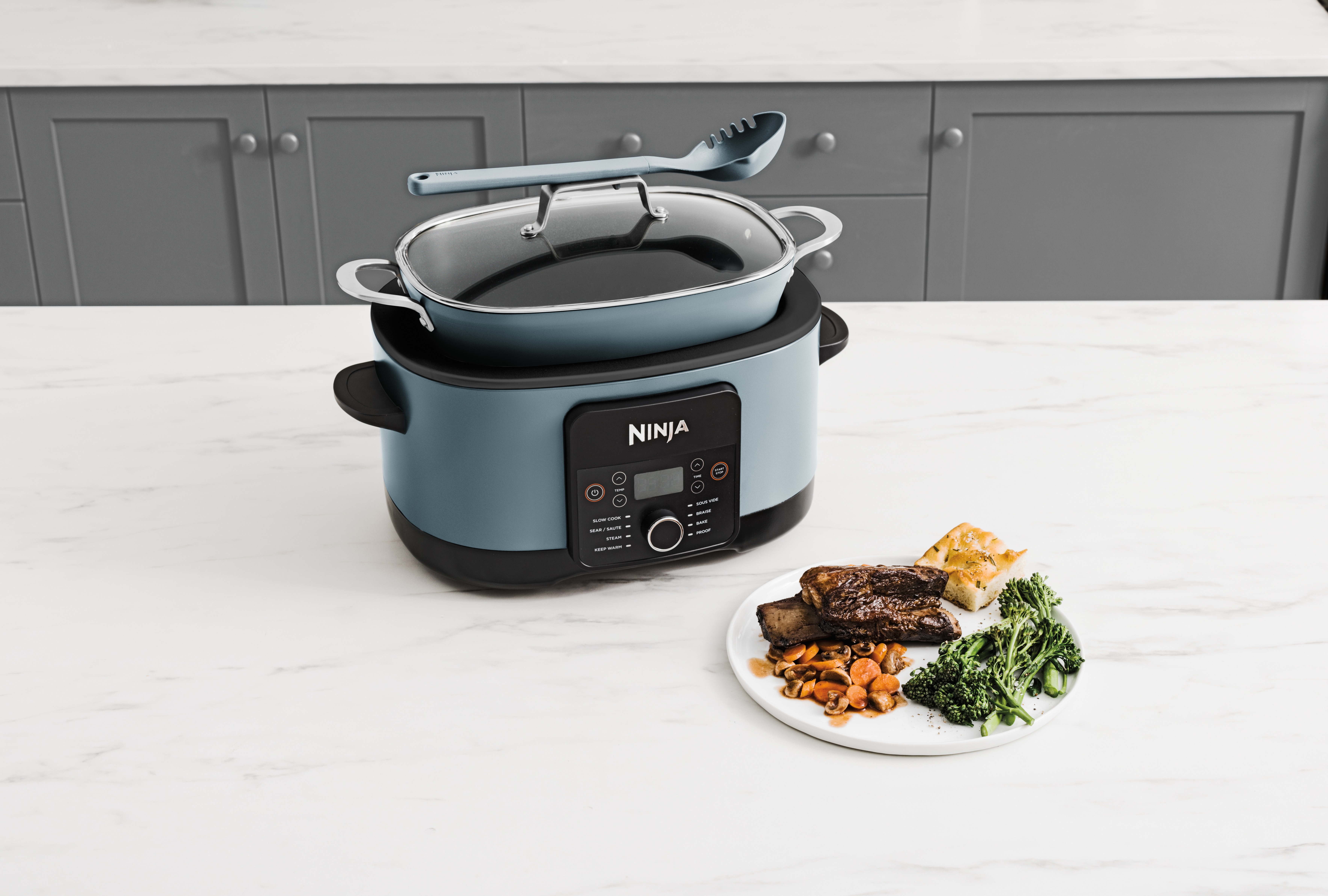 8-in-1 Multikocher kochen wie auf dem Herd, in einem einzigen Topf mit bis zu 1200 W Leistung für bis zu 8 Portionen - Meersalzgrau