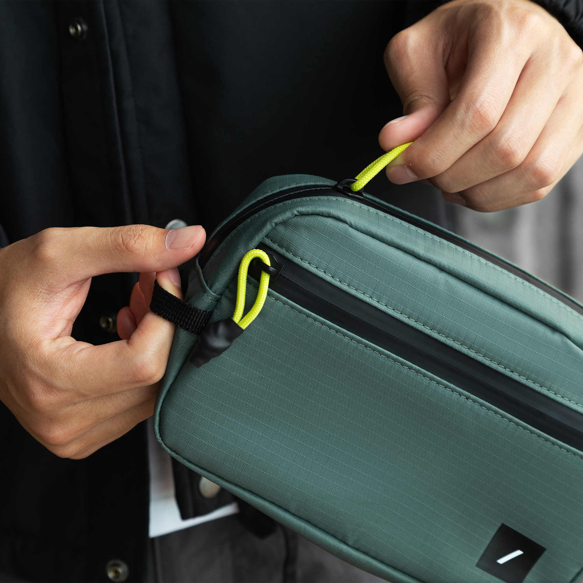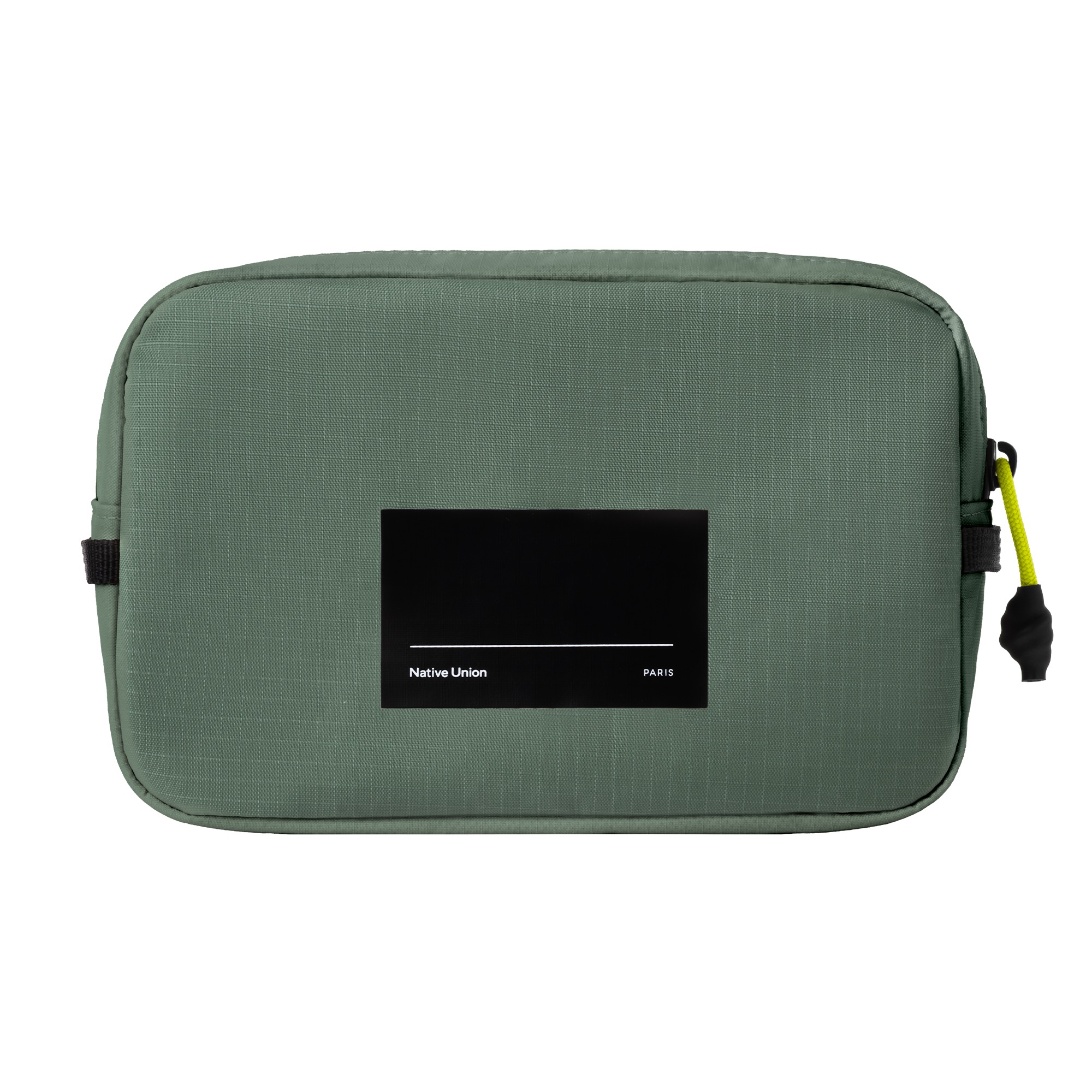 Clevere und stylische Tasche mit wasserdichten Reissverschlüssen sowie Steckplätze für Macbook-Netzteil, Airpod-Case, Apple Pencil, Powerbank und diverse Kabel - Slate Green