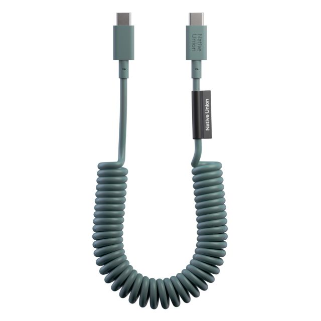 Modisches USB-C zu USB-C Lade- und Sync- Kabel mit spiralförmigen Design von Festnetztelefonen für alle USB-C Geräte (Smartphones, Tablets, Laptops, MacBooks), 1.2m - Slate Green