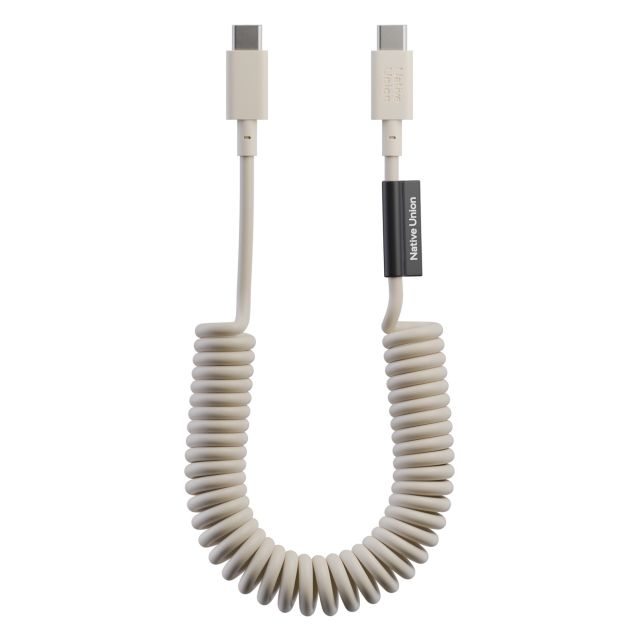 Modisches USB-C zu USB-C Lade- und Sync- Kabel mit spiralförmigen Design von Festnetztelefonen für alle USB-C Geräte (Smartphones, Tablets, Laptops, MacBooks), 1.2m - Sandstone
