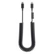 Modisches USB-C zu USB-C Lade- und Sync- Kabel mit spiralförmigen Design von Festnetztelefonen für alle USB-C Geräte (Smartphones, Tablets, Laptops, MacBooks), 2.4m - Black