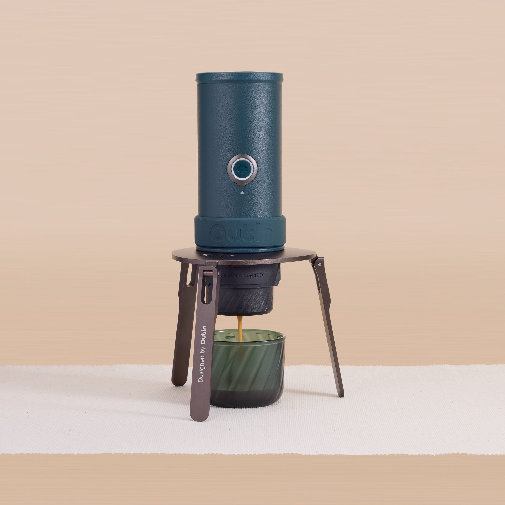 Outin Mino tragbare elektrische Espressomaschine - Ultraleichte tragbare elektrische Espressomaschine mit 9000 mAh Akku, 149 Sekunden Aufheizzeit, 22 Bar Druck und 2-in-1-Brühsystem für Kapseln und gemahlenen Kaffee - Canyon Green