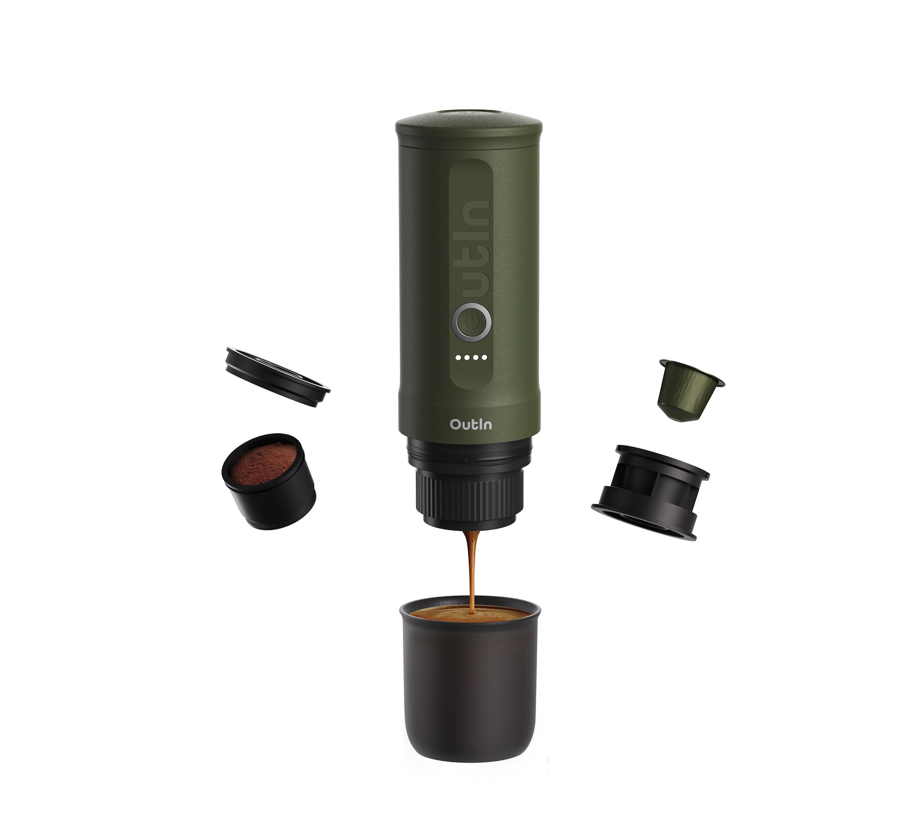 Espresso-Geschenkset für Reisende mit ultraleichter Nano Espressomaschine, 200 Sekunden Aufheizzeit, 20 Bar Druck für cremigen Espresso - Forest Green