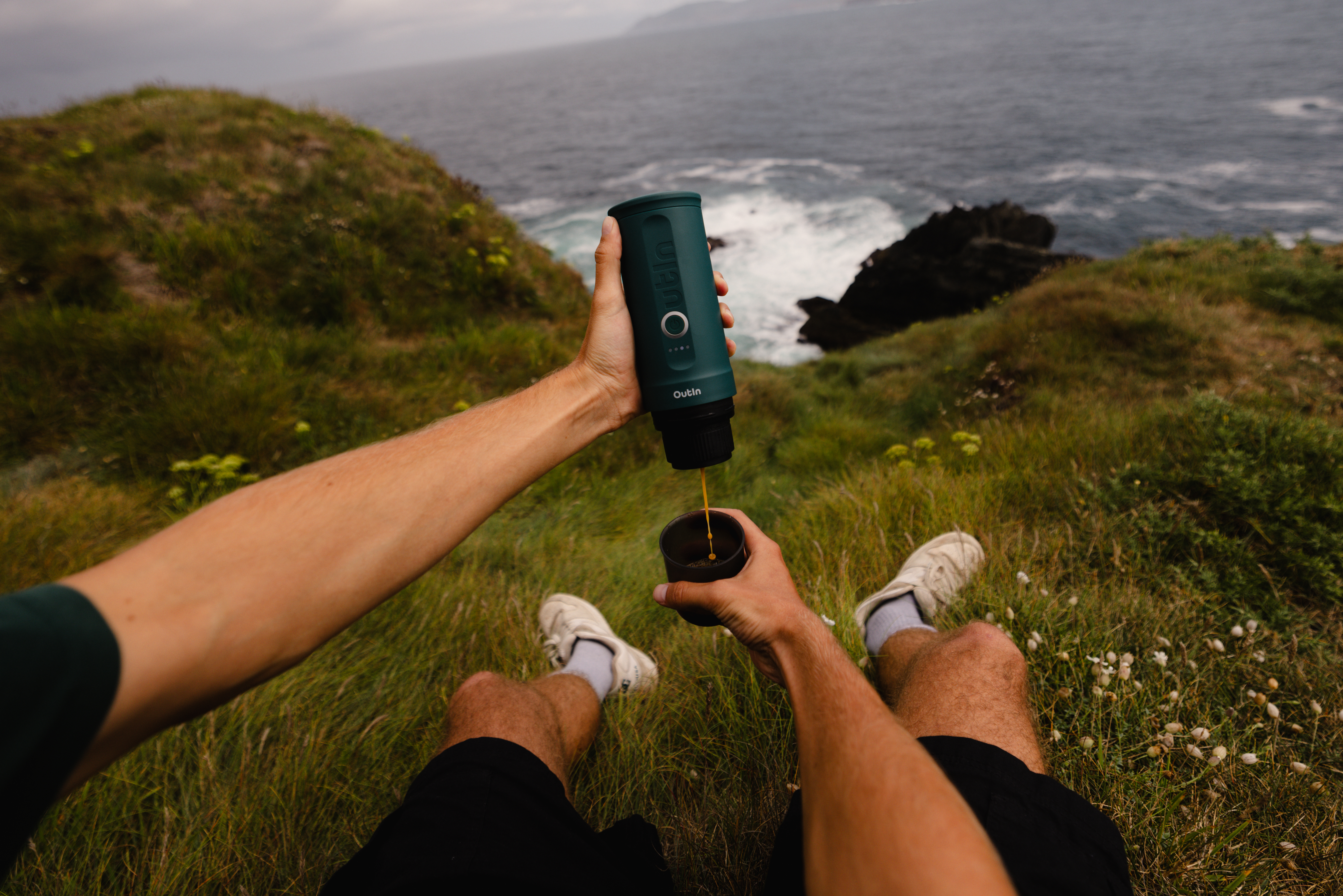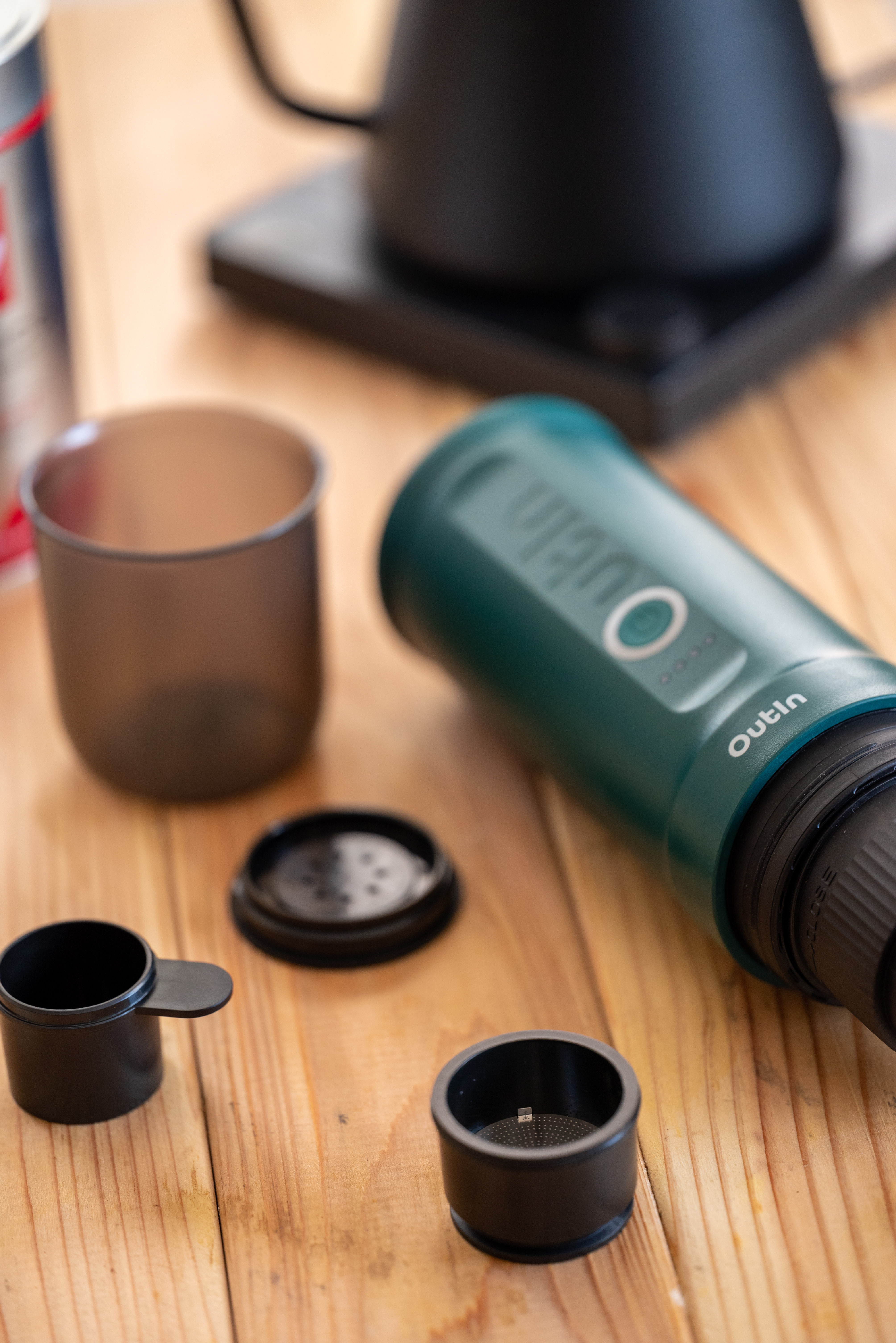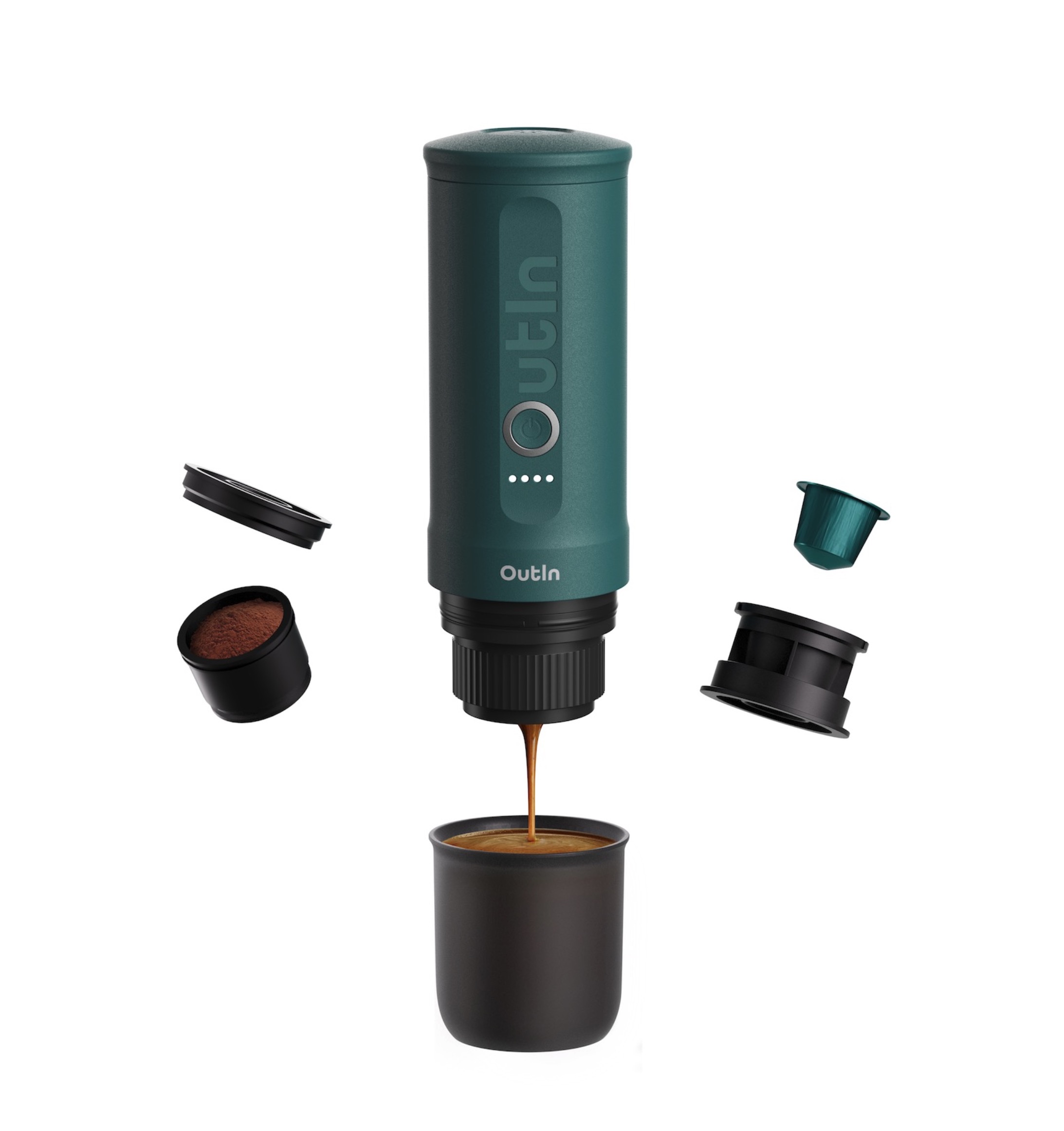 Ultraleichte tragbare Espressomaschine mit 7500 mAh Akku, 200 Sekunden Aufheizzeit, 20 Bar Druck und 2-in-1-Brühsystem für Kapseln und gemahlenen Kaffee - Outin Teal