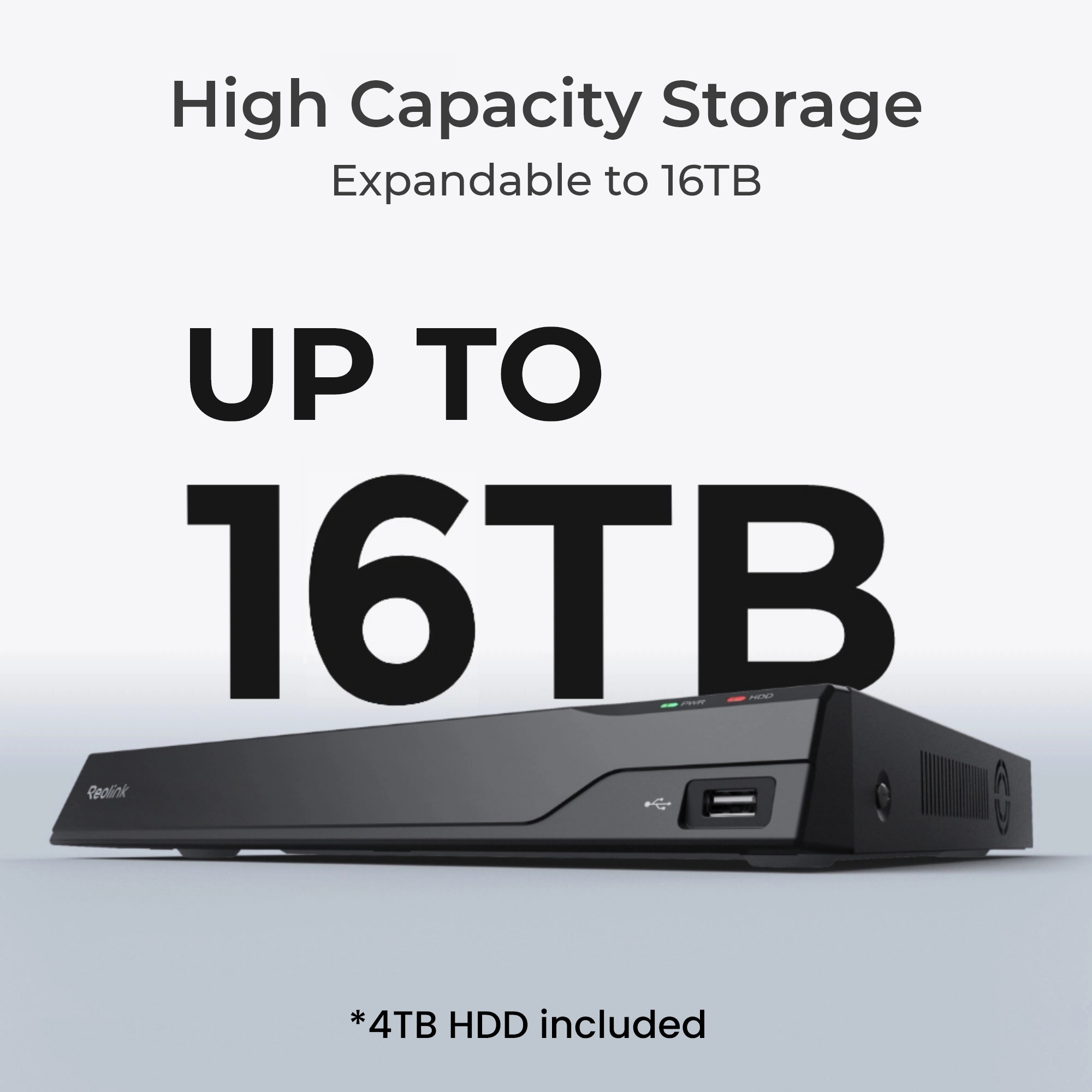 16-Kanal PoE-Überwachungskamerasystem mit 4TB Harddrive - kompatibel mit allen PoE-Kameras von Reolink (Recorder ist für insgesamt bis zu 16x 5/8/12MP Kameras von Reolink) - Schwarz