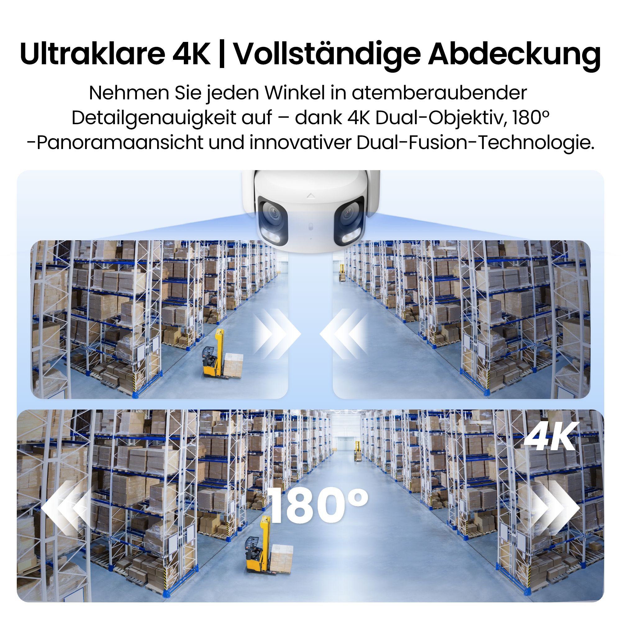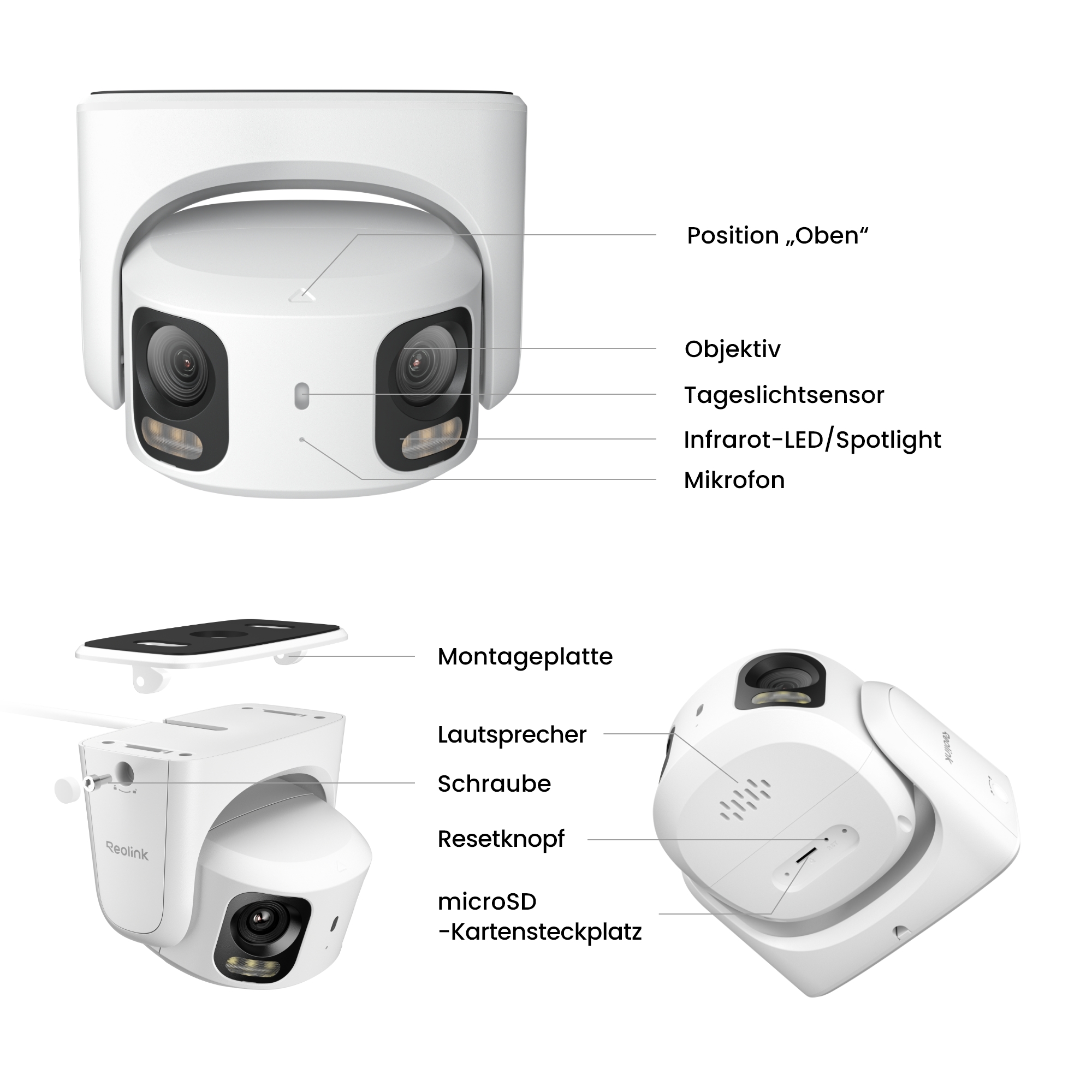 Reolink Professional Series 4K Smart PoE Kamera mit 180° Dual-Linse, 8MP Auflösung, Farb-Nachtsicht, AI-Video-Suche und Zwei-Wege-Audio - Weiss