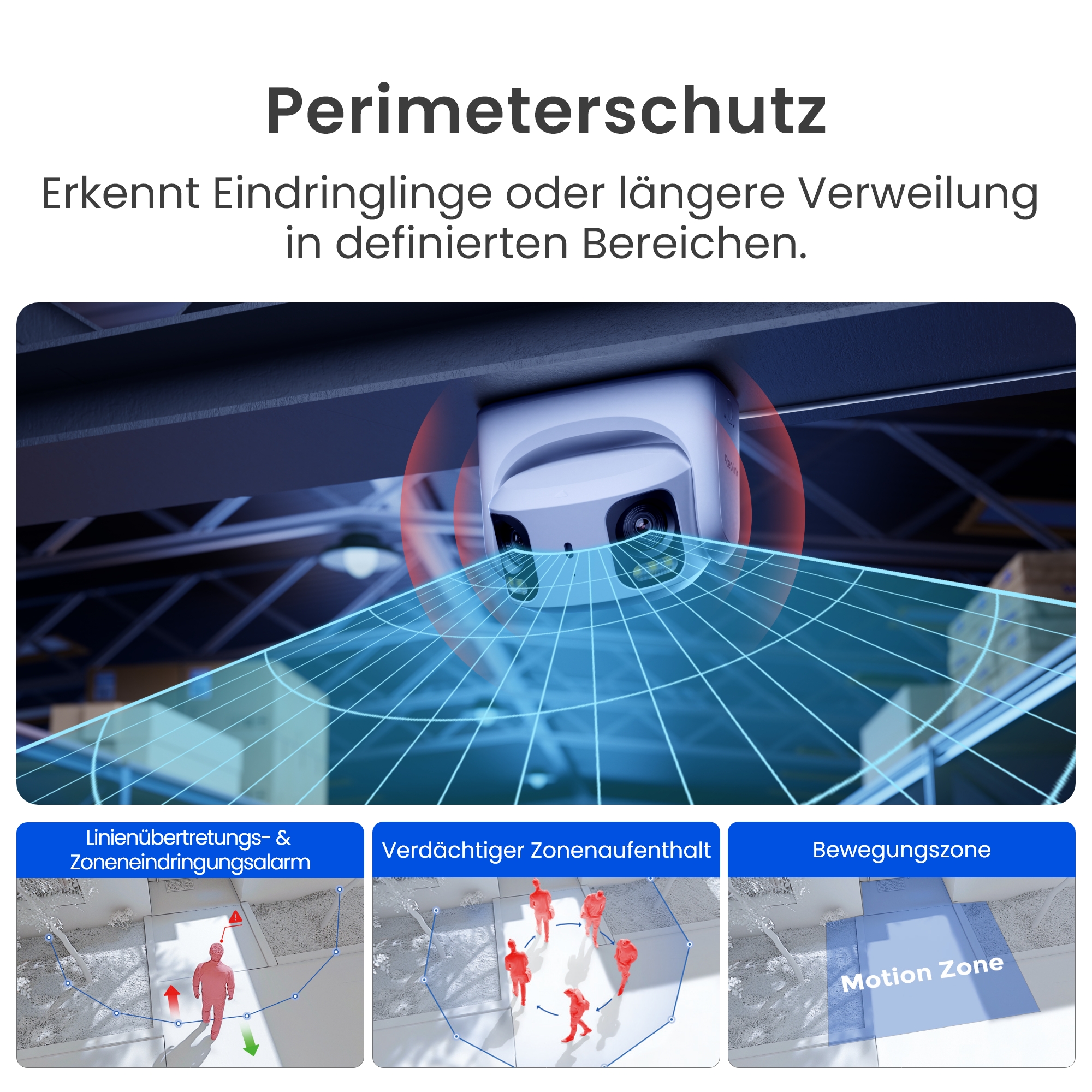 Der Perimeterschutz von Reolink überwacht definierte Bereiche präzise. Mit Funktionen wie Linienüberschreitungs- und Zonenintrusionswarnungen ermöglicht er eine proaktive Bedrohungserkennung und schnellere Reaktionen.