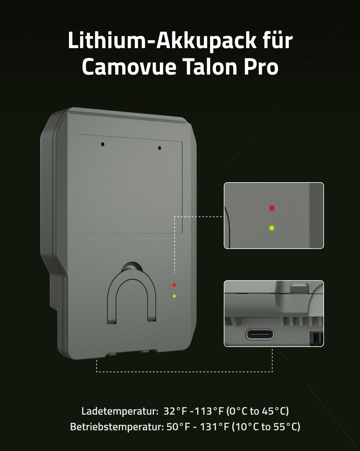 Wiederaufladbarer Lithium-Akku für die Camovue Talon Pro Wildkamera - Schwarz