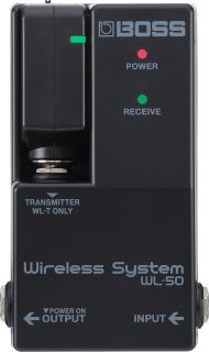 Boss WL-50 Wireless System - Wireless System, Plug & Play Lösung um ein Pedalboard ohne Kabel zu betreiben, mit eingebautem Akku für bis zu 12 Stunden Spieldauer - Schwarz