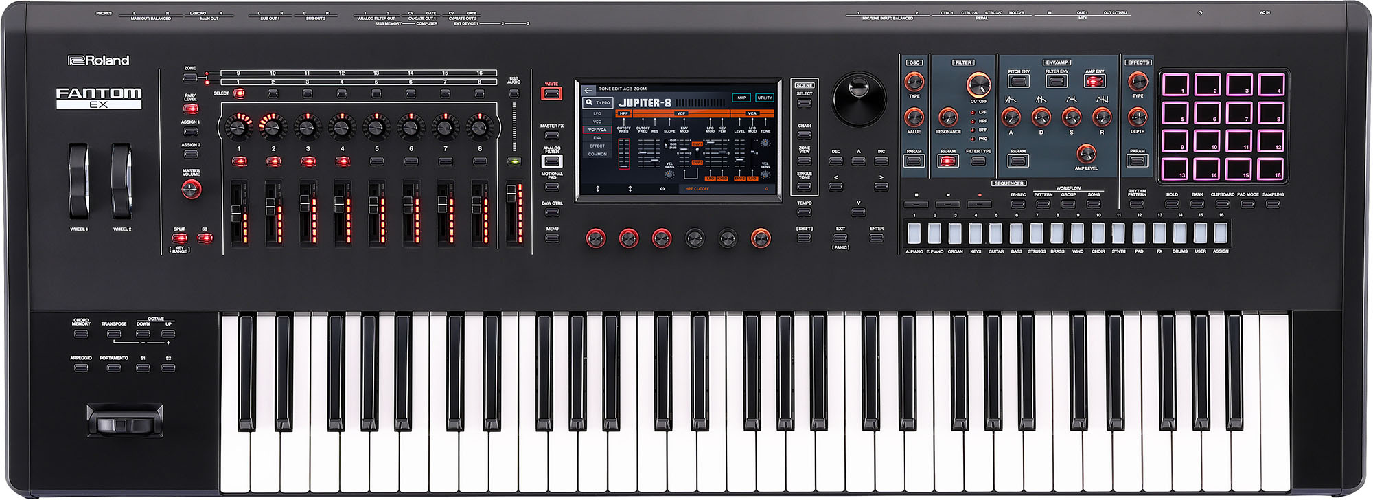 Der FANTOM EX ist das leistungsstärkste Kreativ-Keyboard der Welt. Das neueste Modell der FANTOM Reihe erweitert die führende Roland Synthesizer-Plattform um innovative neue Möglichkeiten, darunter den Einsatz mehrerer Soundengines, umfangreiche Kompositions- und Performance-Tools sowie eine außergewöhnliche Spielbarkeit.Ausgestattet mit 61 Synthesizertasten, beinhaltet der FANTOM 6 EX jedes einzelne Feature aus seinem berühmten Vorgänger – und noch so viel mehr. Für den EX haben wir die bestehende Plattform mit unseren neuesten Technologien ausgestattet. Das Ergebnis ist ein umfassendes kreatives und professionelles Ökosystem für die Bereiche Sounddesign, Sequencing und Performance.