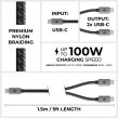 Elegante cavo da USB-C a USB-C doppio lungo 150 cm, realizzato in robusta treccia di nylon e velocità di ricarica di 100 W