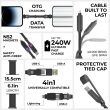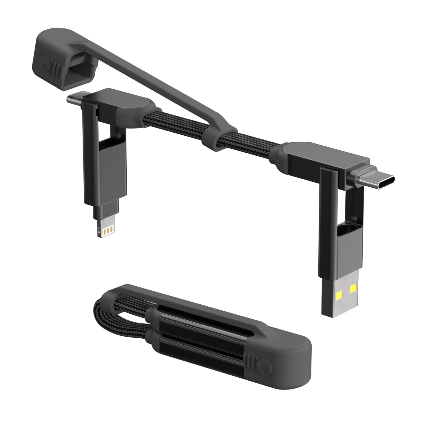 240W Schlüsselanhängerkabel (Lade- & Sync) mit 4 verschiedenen Ladekabelanschlüssen (2 x USB-C, USB-A & Lightning) für iPhone, Smartphones, Tablets, Notebooks etc. - Lanzarote Gray