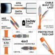 240W Schlüsselanhängerkabel (Lade- & Sync) mit 4 verschiedenen Ladekabelanschlüssen (2 x USB-C, USB-A & Lightning) für iPhone, Smartphones, Tablets, Notebooks etc. - Atacama Orange