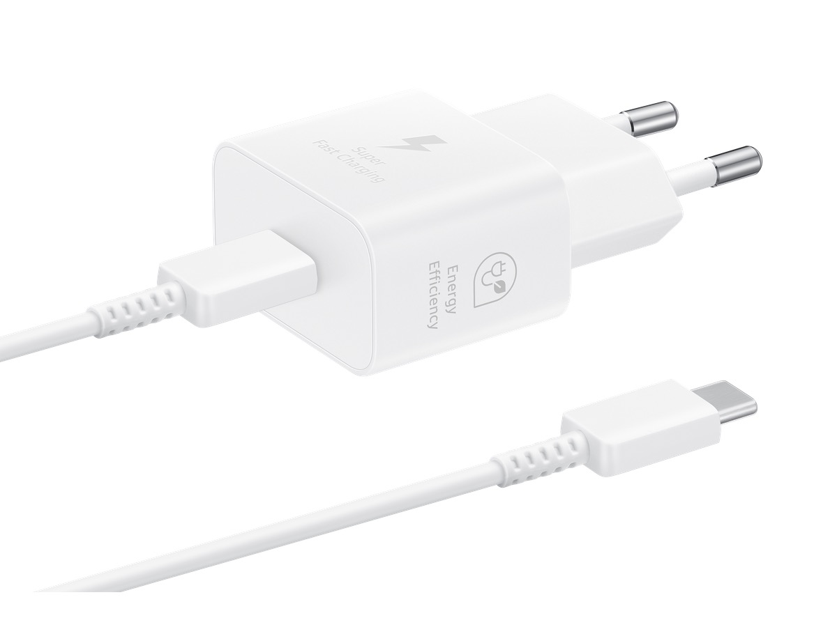 Fast charging adapter for charging compatible devices via USB Type-C, supports fast charging with up to 25 watts. Also compatible with smartphones or tablets from other manufacturers With 100-240 V, can also be used abroad with optionally available plug adapter USB Type-C to USB Type-C cable for charging and synchronising included.