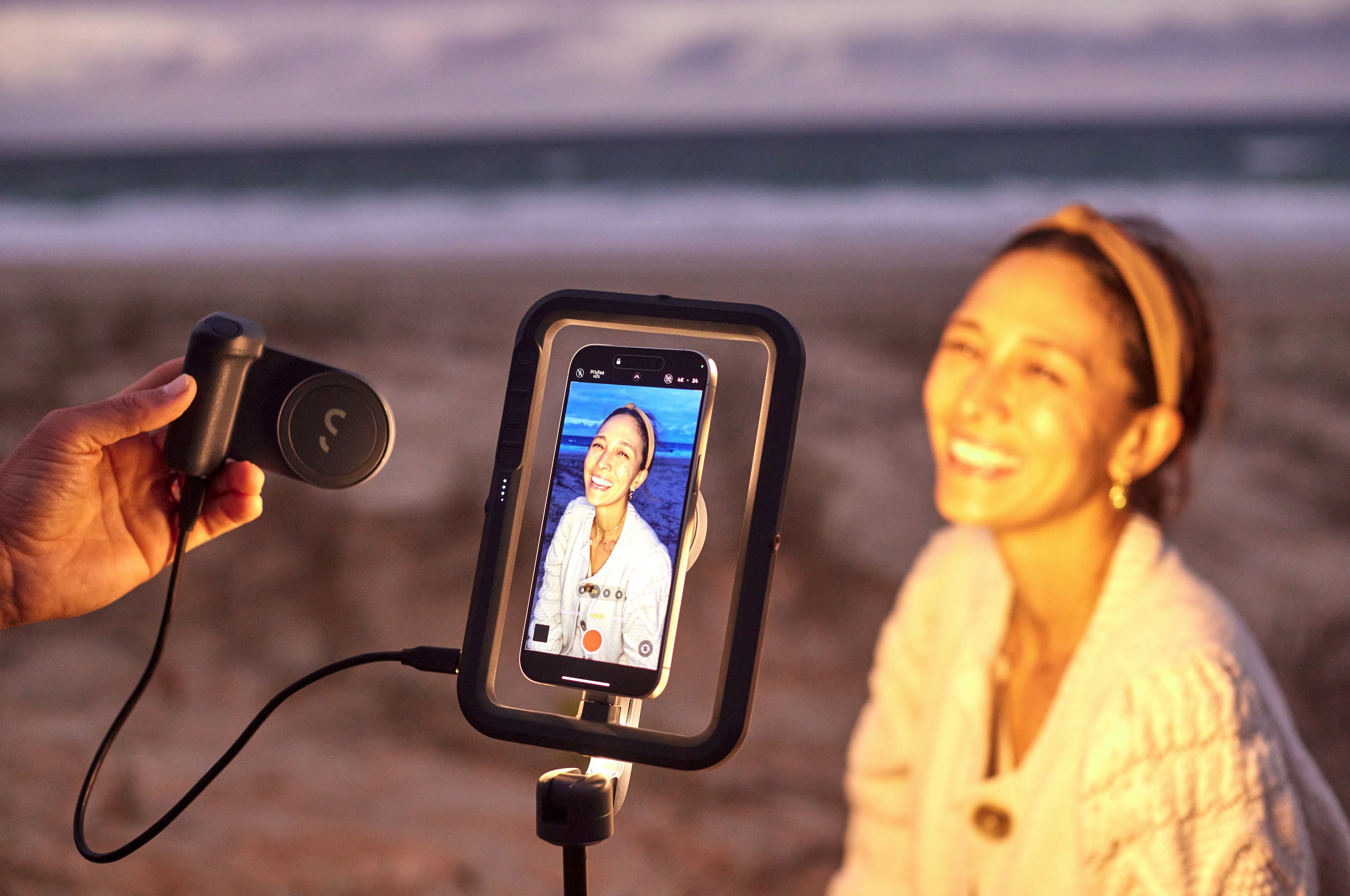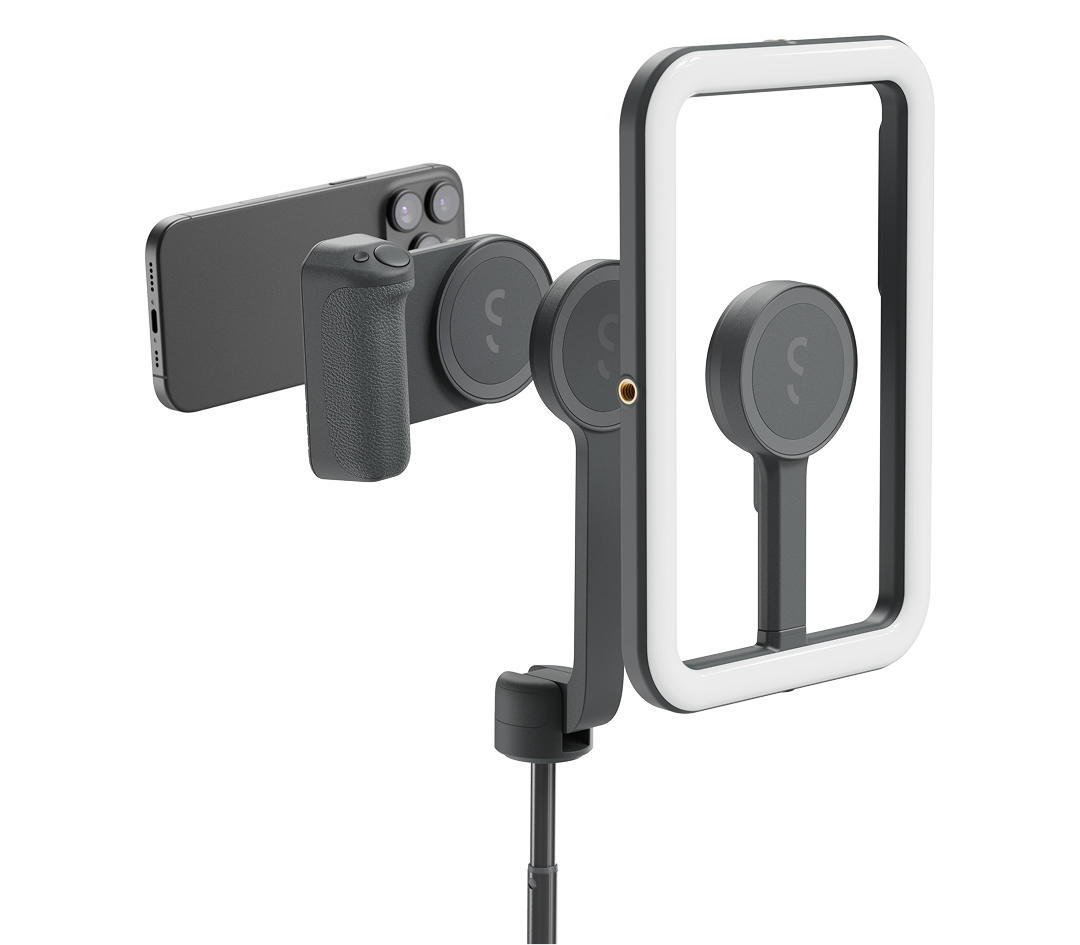 Turns your smartphone (with MagSafe system) into a studio with SnapGrip Pro camera grip with power bank, SnapStand Max light stand, SnapStudio Light LED ring light & a bag for transport